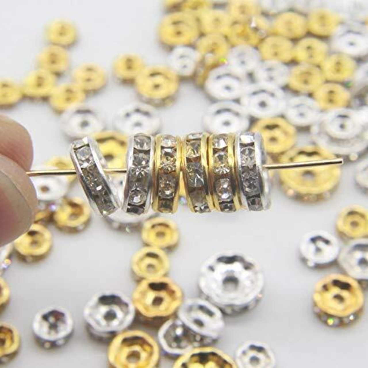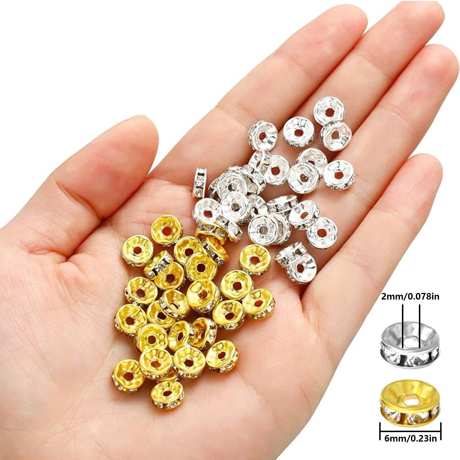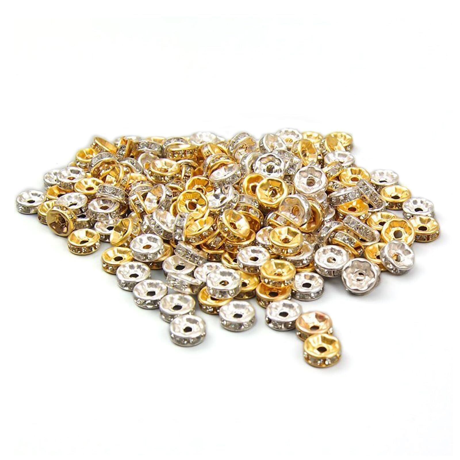 【BEAUTY PLAYER】ロンデル 6mm 平型 200個 ゴールド シルバー 各100個 ラインストーン付き スペーサービーズ メタル ビーズ アクセサリーパーツ ジュエリー 手芸 クラフト用品 手作り素材 DIY材料 (6mm)