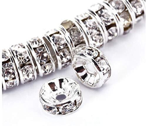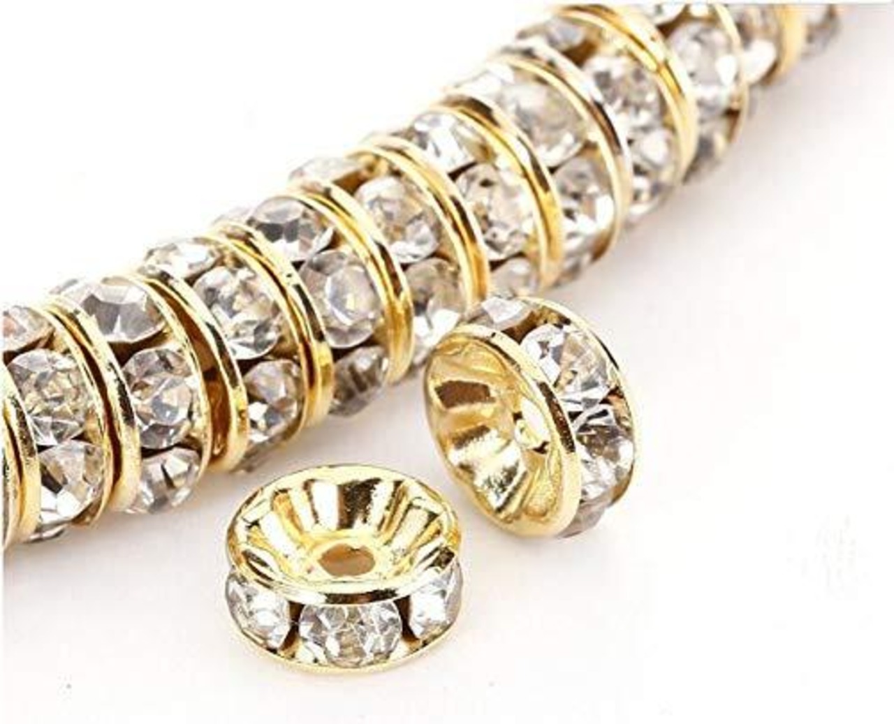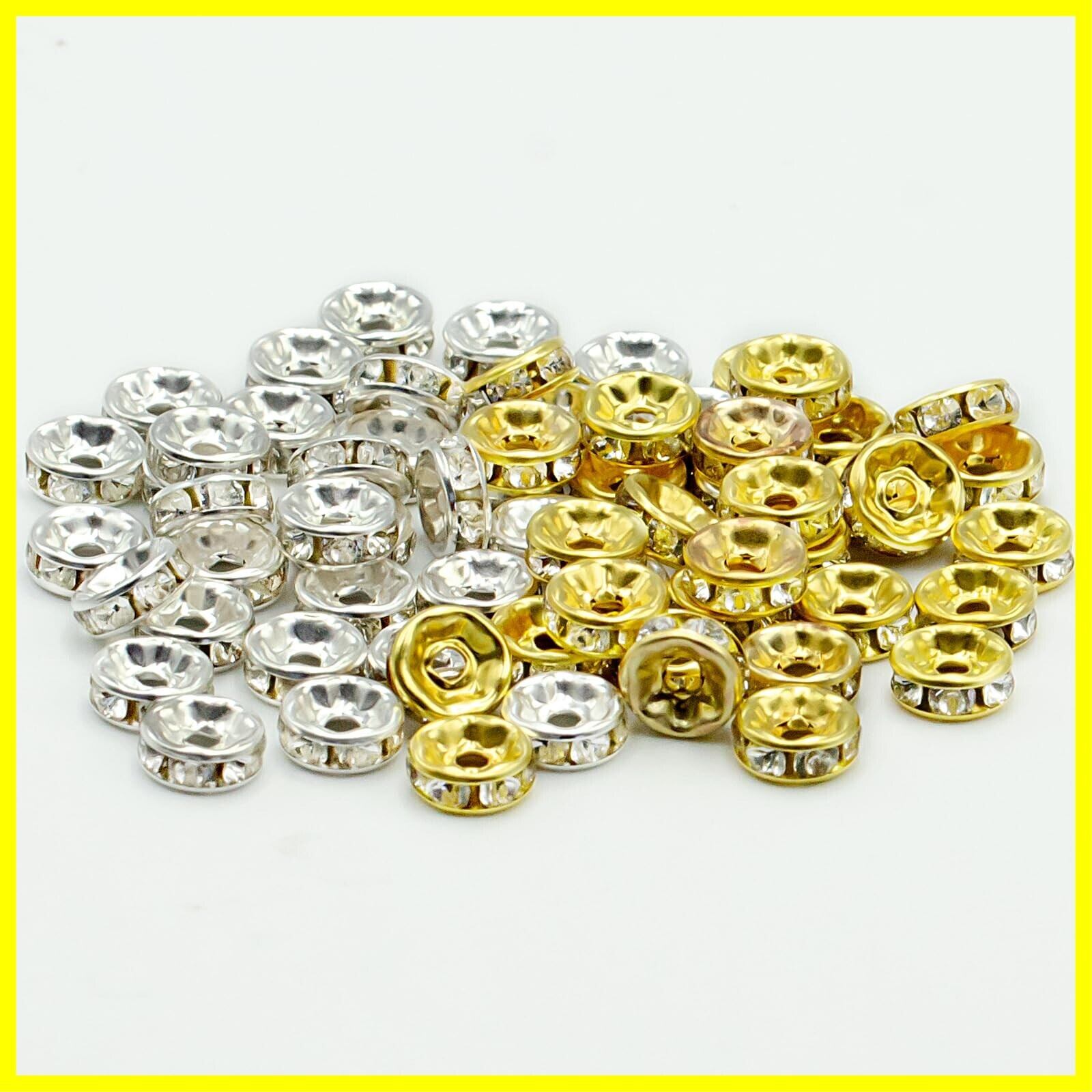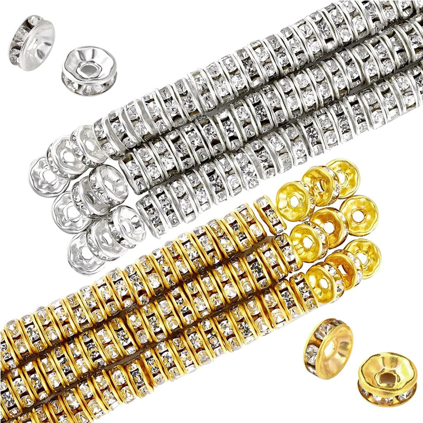 【BEAUTY PLAYER】ロンデル 6mm 平型 200個 ゴールド シルバー 各100個 ラインストーン付き スペーサービーズ メタル ビーズ アクセサリーパーツ ジュエリー 手芸 クラフト用品 手作り素材 DIY材料 (6mm)