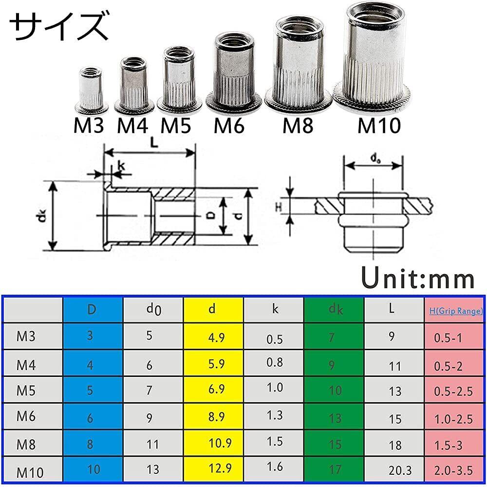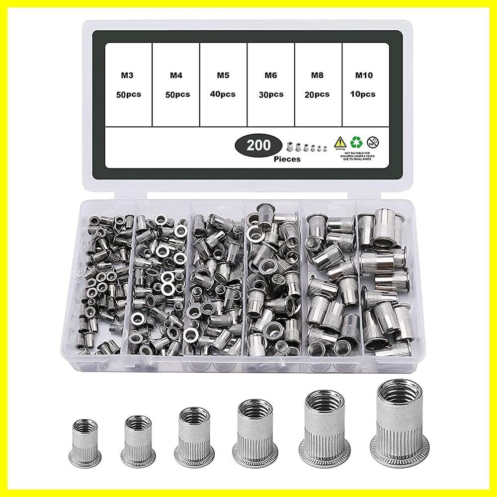 Menetopリベットナット 200個入 ナッター 鋼合金 リベッター ナットリベット M3 M4 M5 M6 M8 M10 中空リベット 車 機械 治具 修理