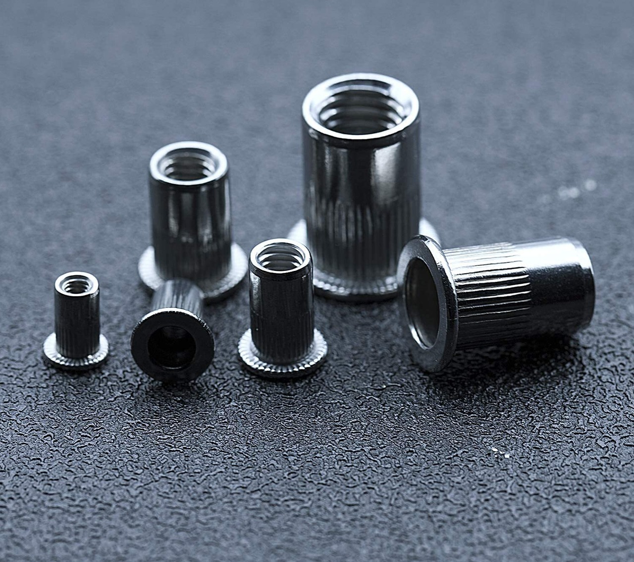ステンレスローレット鋼リベットナット。