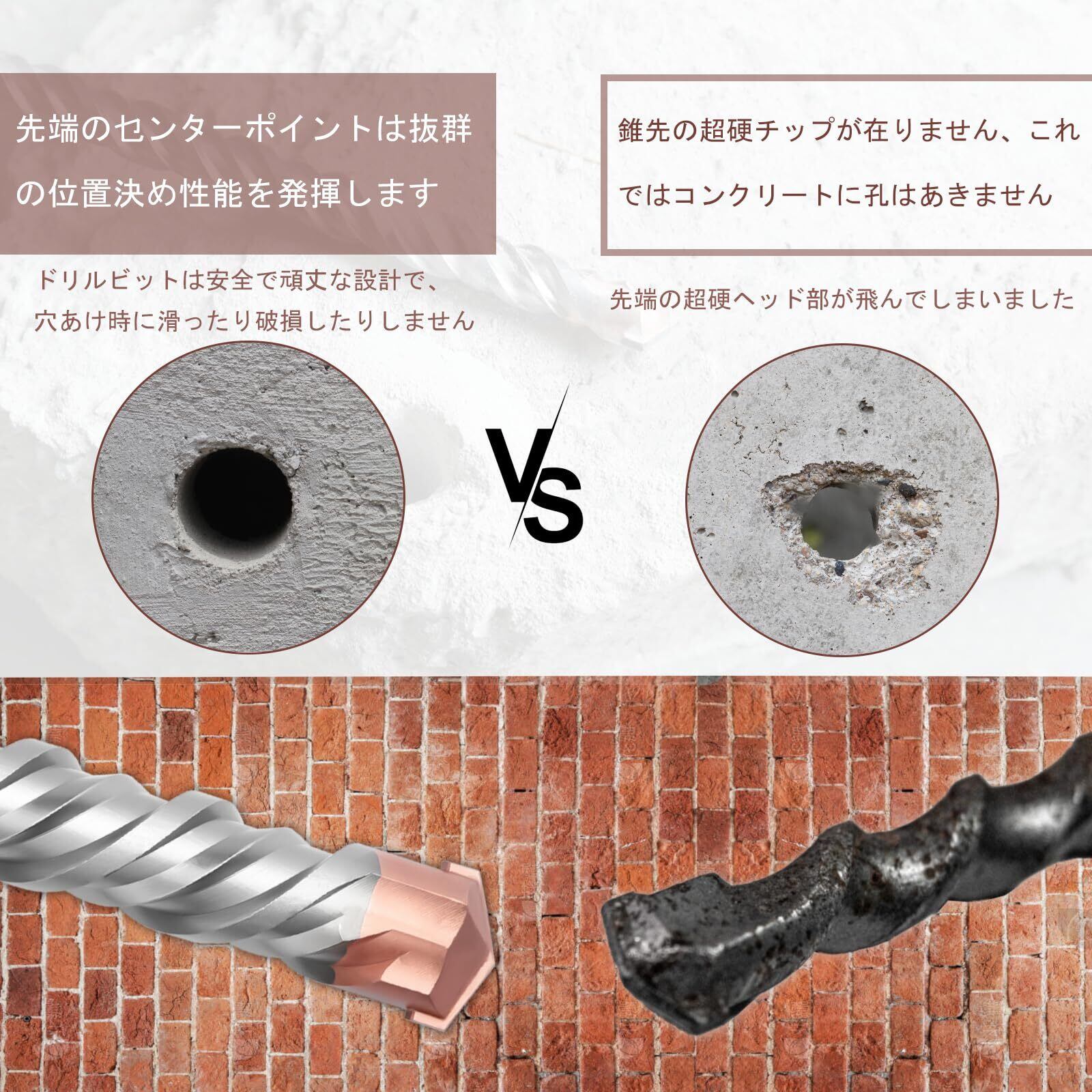 高品質:ドリルビットの特殊処理,構造なのであきらかにノーマルドリルビットより、早く楽に穴があきます。コンクリートなら更にスピーディーに作業,安全性、穿孔スピードがアップ