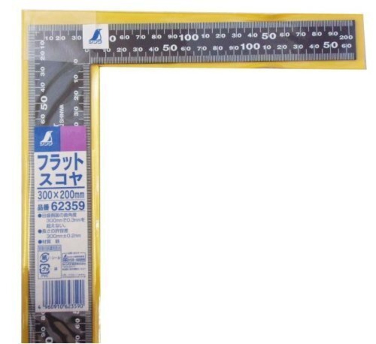 シンワ測定(Shinwa Sokutei) フラットスコヤ 黒色 白目盛 200mm×300mm 62359