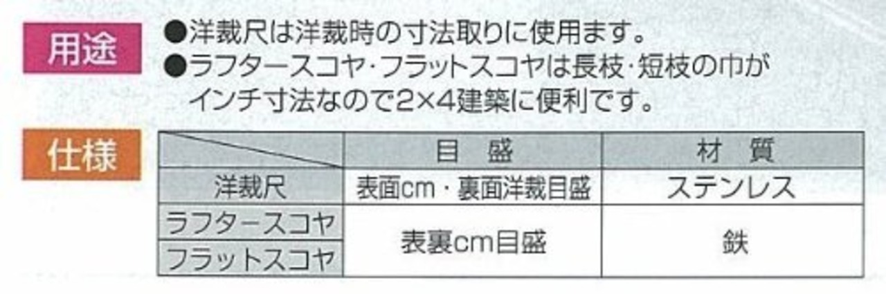 ラフタースコヤ・フラットスコヤは長枝・短枝の巾がインチ寸法なので2×4建築に便利です