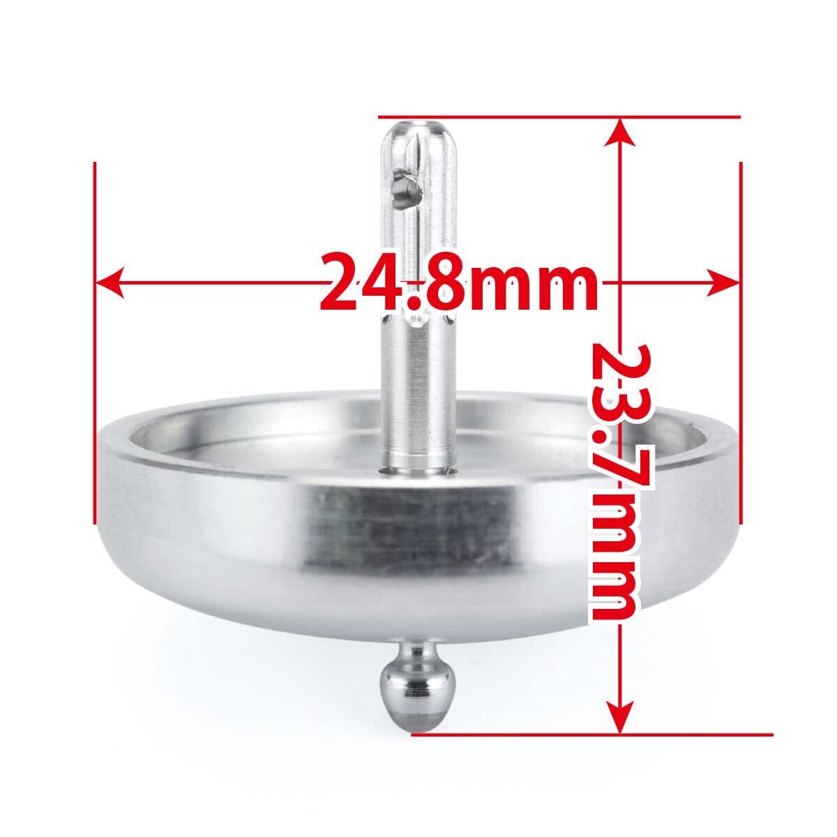 軸を延長するとともに、先端部に鋼球を搭載。傾きにつよくなりより長く回る設計になっています。直径24.8mmの削り出し制作による精密なこまです。5円玉をご用意いただければ、5円が重りになりさらに回転時間が伸びます。