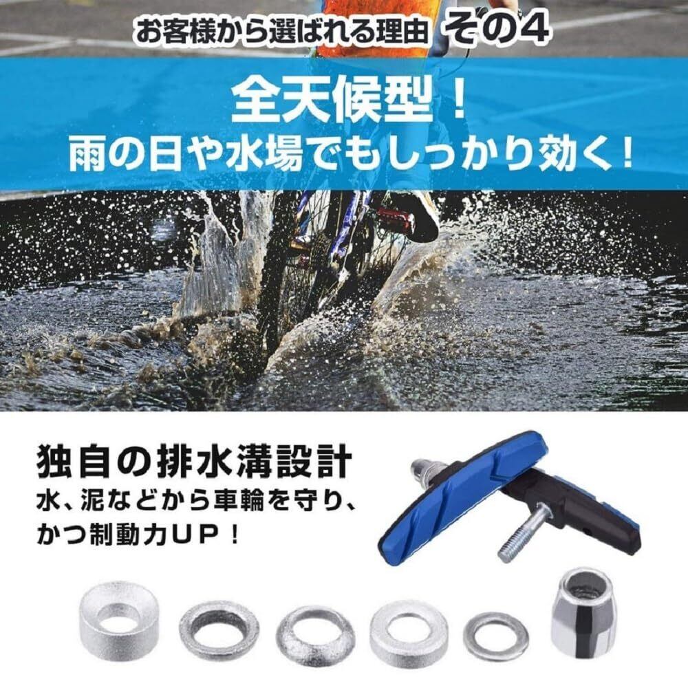 【全天候対応】ブレーキ面に排水機能を備えております。全天候型ですので雨の日でもブレーキ性能は高く、安全に走行いただけます。