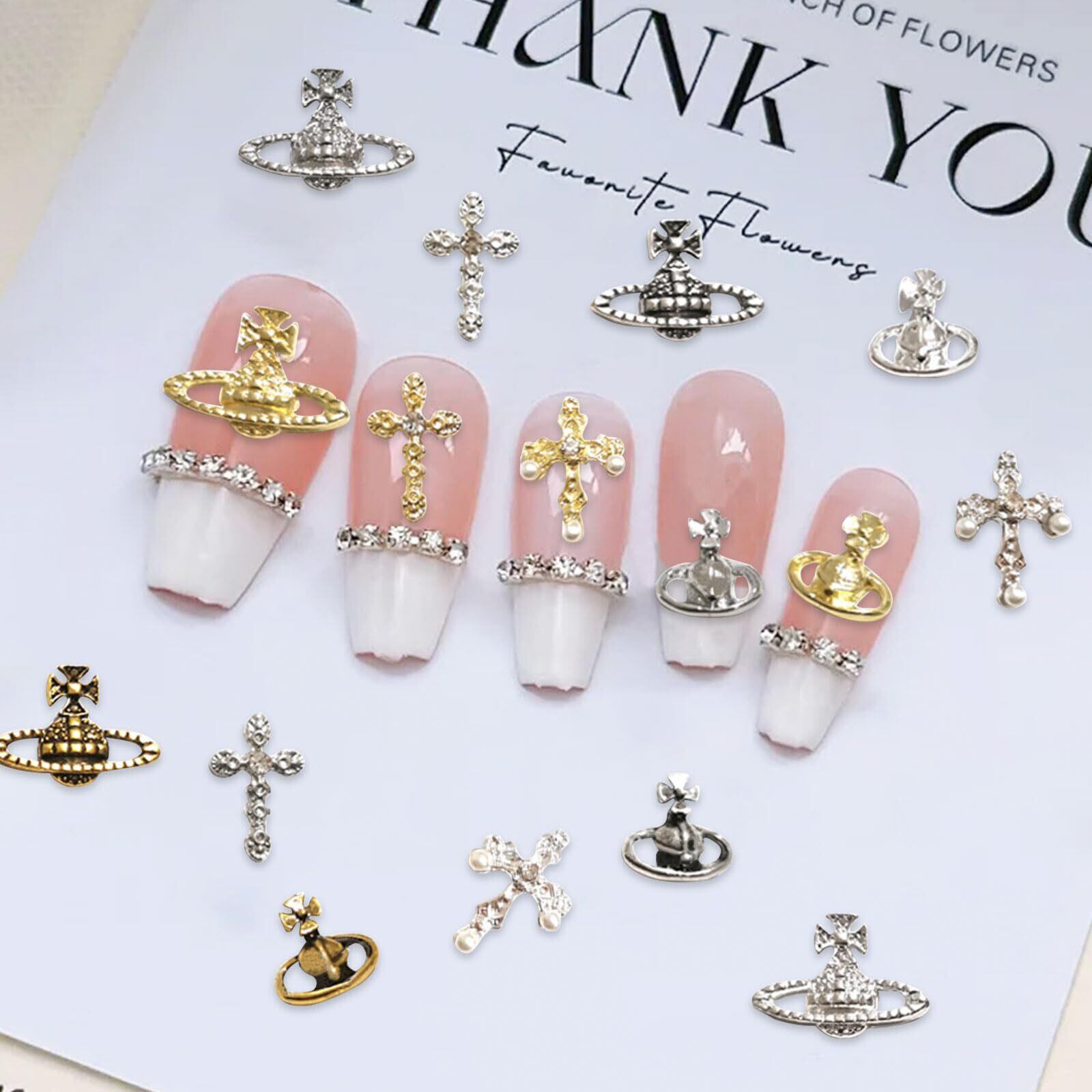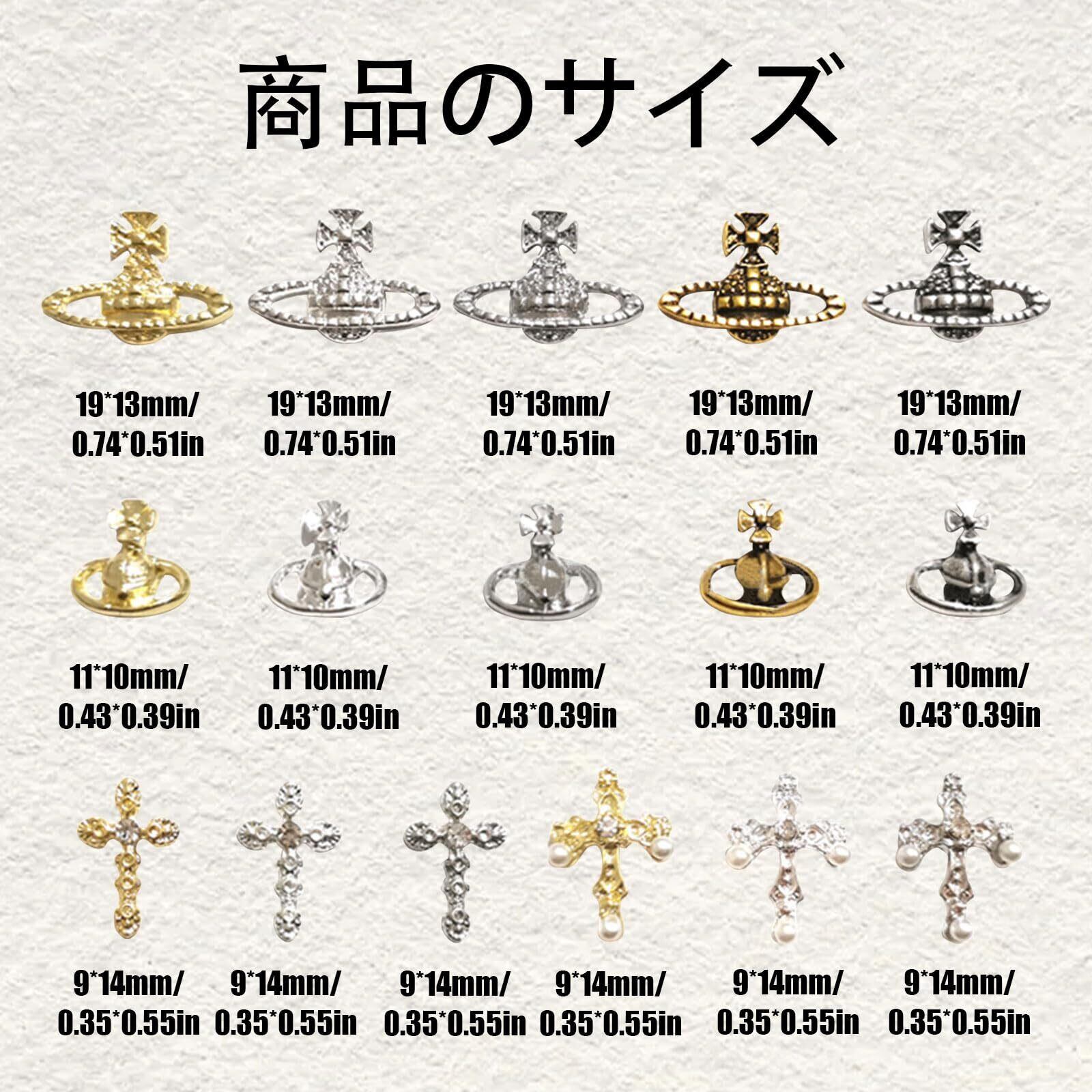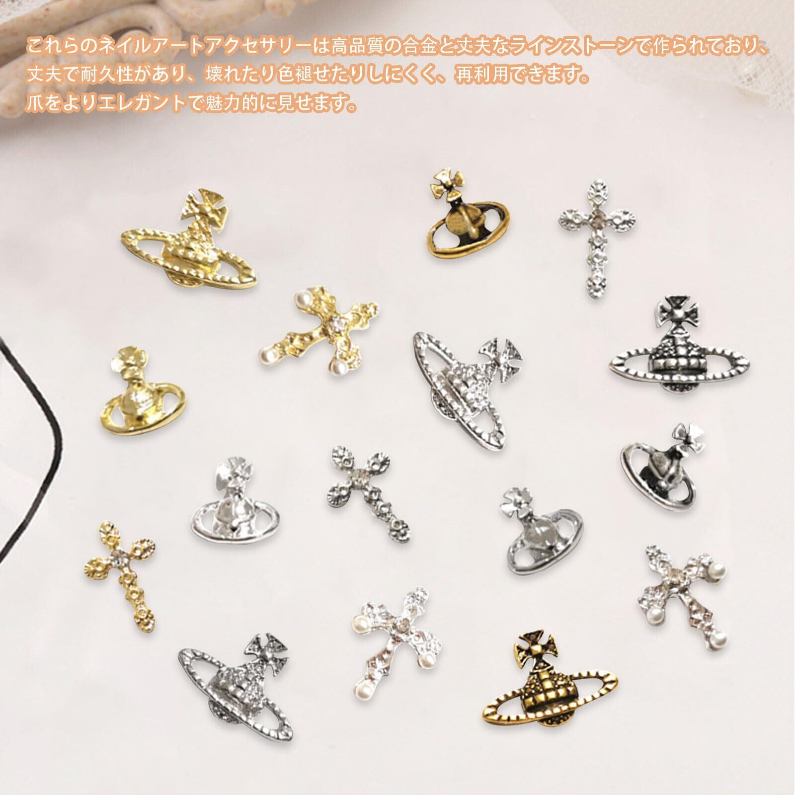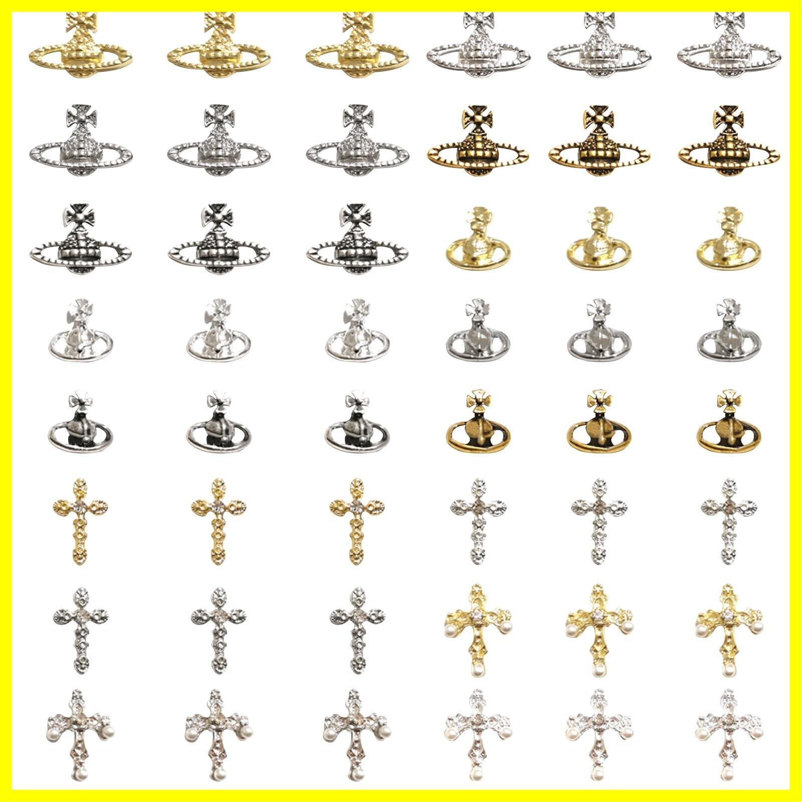 ネイルパーツ 48個セット 3D 立体 合金 惑星 クロス パール メタル ネイルパーツ シルバー ジュエリーパーツ ネイルアート デコパーツ ハンドメイド (48個セット)