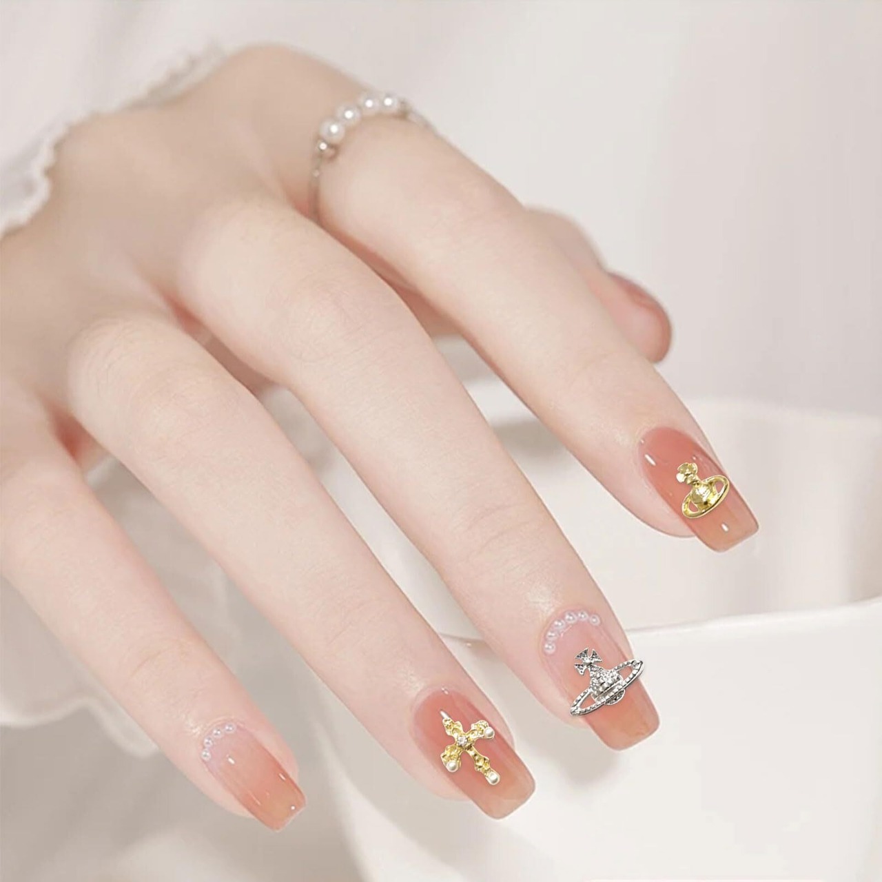 【素材】ネイルパーツは高品質の合金で作られており、質感と光沢に優れ、丈夫で耐久性があり、色あせや錆びにくいです。