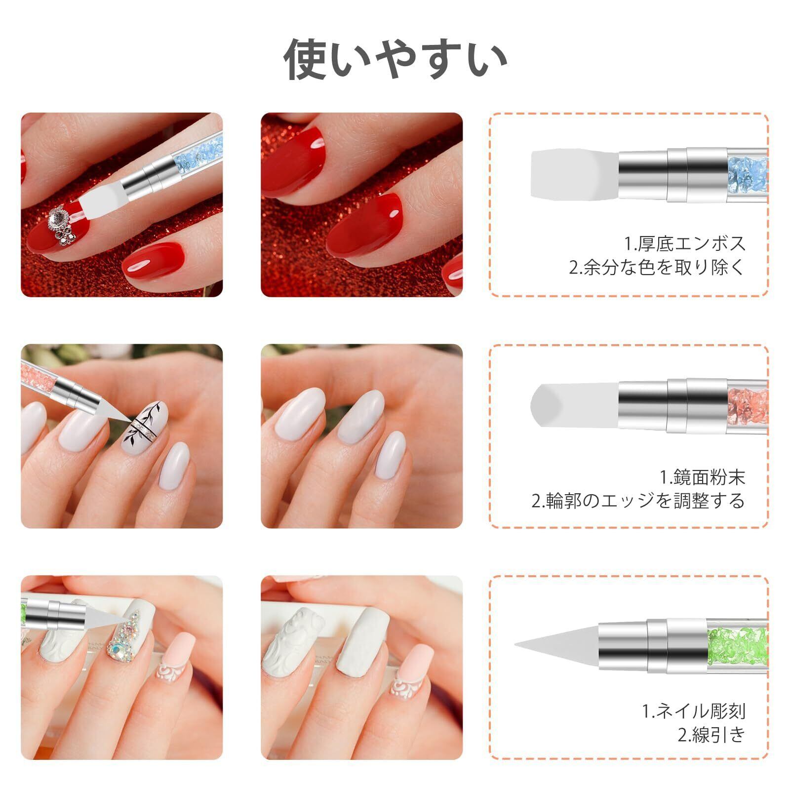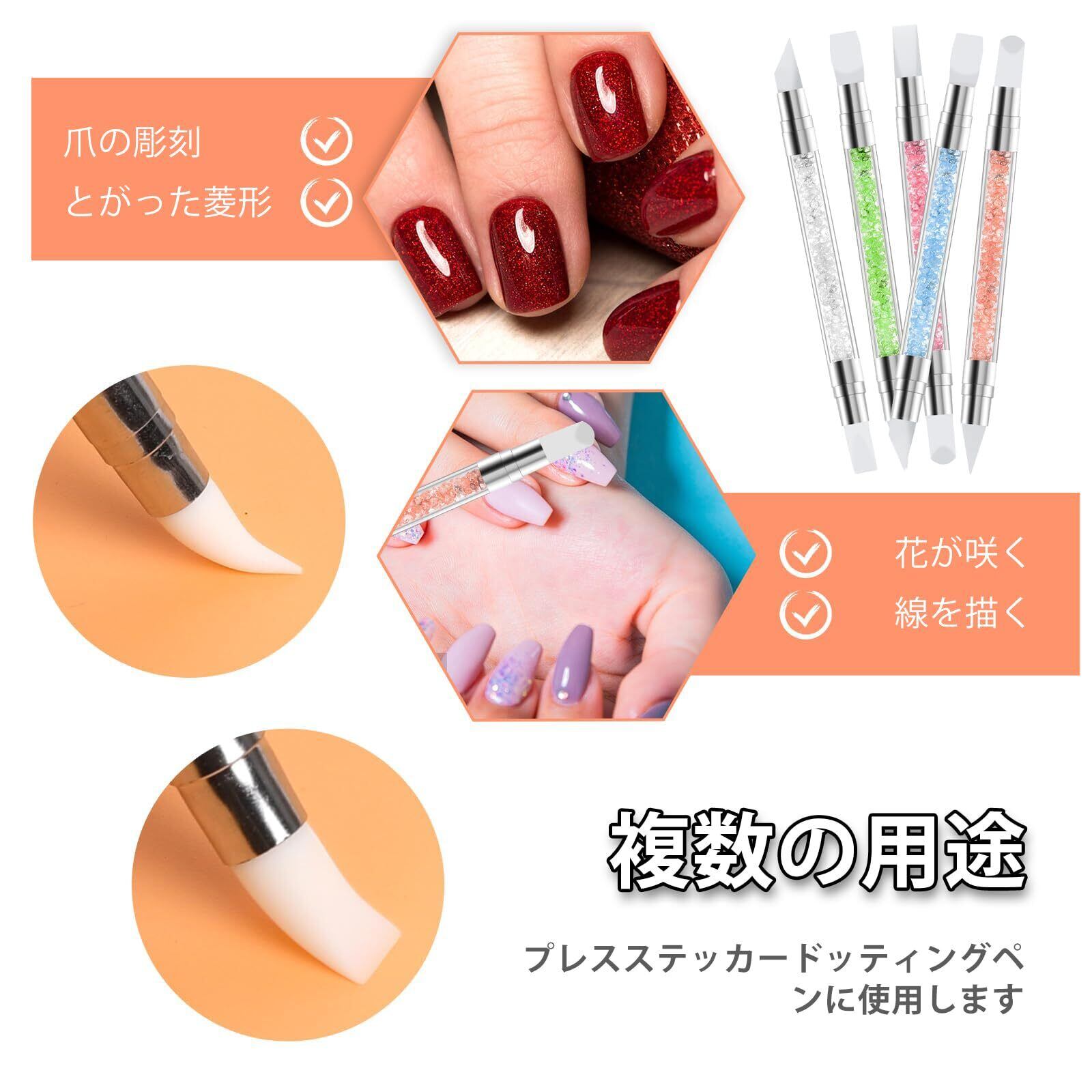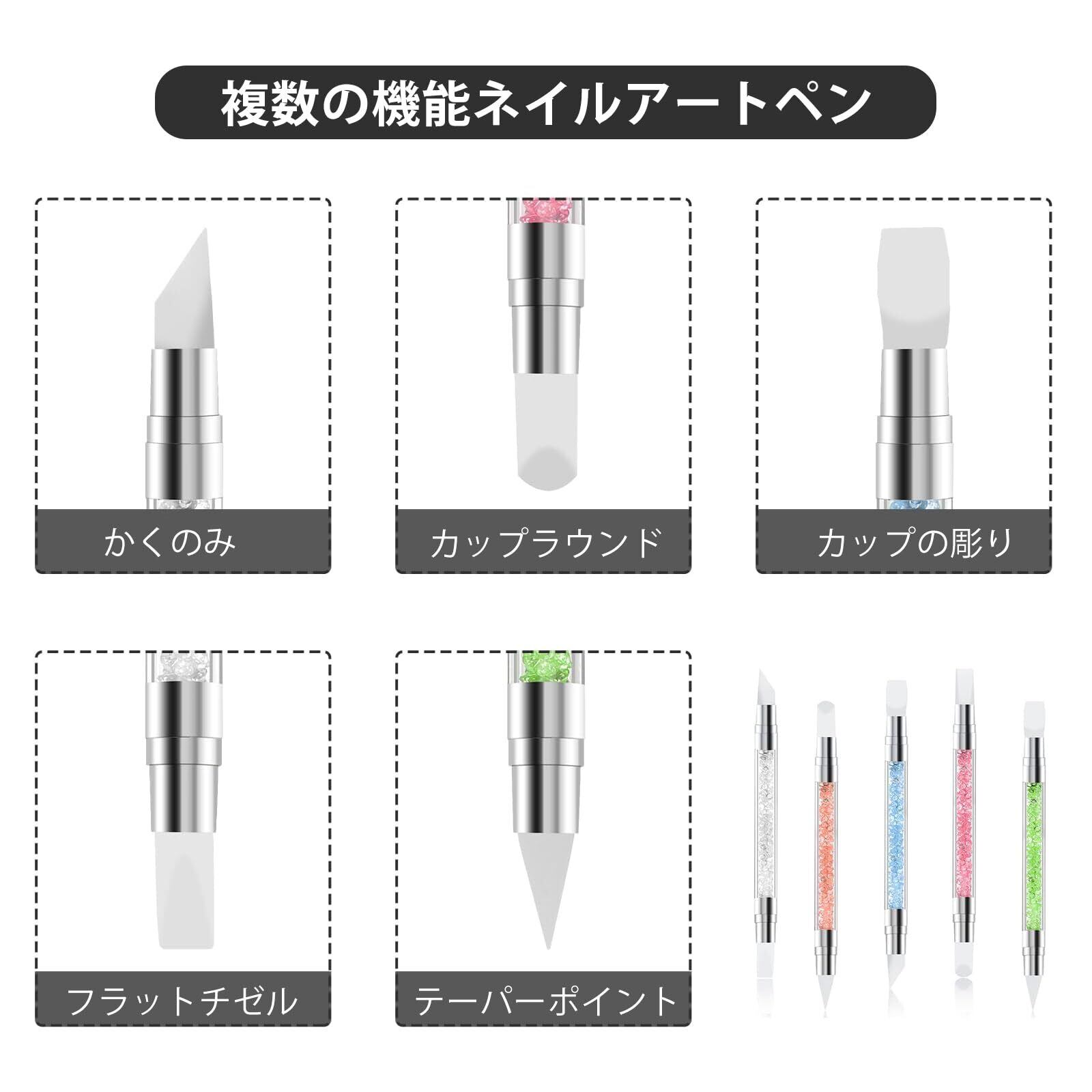 【多機能かつ包括的】形状やサイズの異なるブラシを含む10本セットのネイル彫刻ペンは、すべての爪のデザイン要件を満たすのに最適です。絵画から彫刻、シェイプからモデリングまで、複雑なパターンを簡単に実現するための二重シリコンゴムボールペンが役立ちます。 【高品質耐久性】透明アクリルチューブ、シルバーABSハンドル、カラークリスタルドリルを装飾したホワイトシリコンヘッドから作られたシリコンヘッドは、美しいだけでなく、耐久性にも優れ、日常的に使用するのに適しています。それらは変形や腐食しにくく、長期使用を確保します。 【使いやすさと清潔さ】快適で操作しやすいシリカゲルネイルアクリルブラシセットにより、ストレスをコントロールし、ニーズに合わせて美しいデザインを作ることができます。シリカゲルヘッドは使用後に洗浄しやすく、繰り返し使用できて便利です。 【場面別】初心者でも経験豊富なネイリストでも、サロンでの使用や自宅でのネイルアートのDIYに最適なラインストーンマニキュア彫刻ペンです。天然爪、付け爪、アクリル爪、足の爪まで飾ることができます! 【プレゼントにも最適】このネイルDIYブラシツールは、さまざまなネイルデザインを試してみるのが好きな友人や家族への素敵なプレゼントです。洗練されたデザイン、多機能、使いやすい特徴により、ネイルを愛するすべての人に深い印象を与えるに違いありません。また、パッケージにはすべての5種類のサイズが含まれており、完全なネイルツールセットになります!
