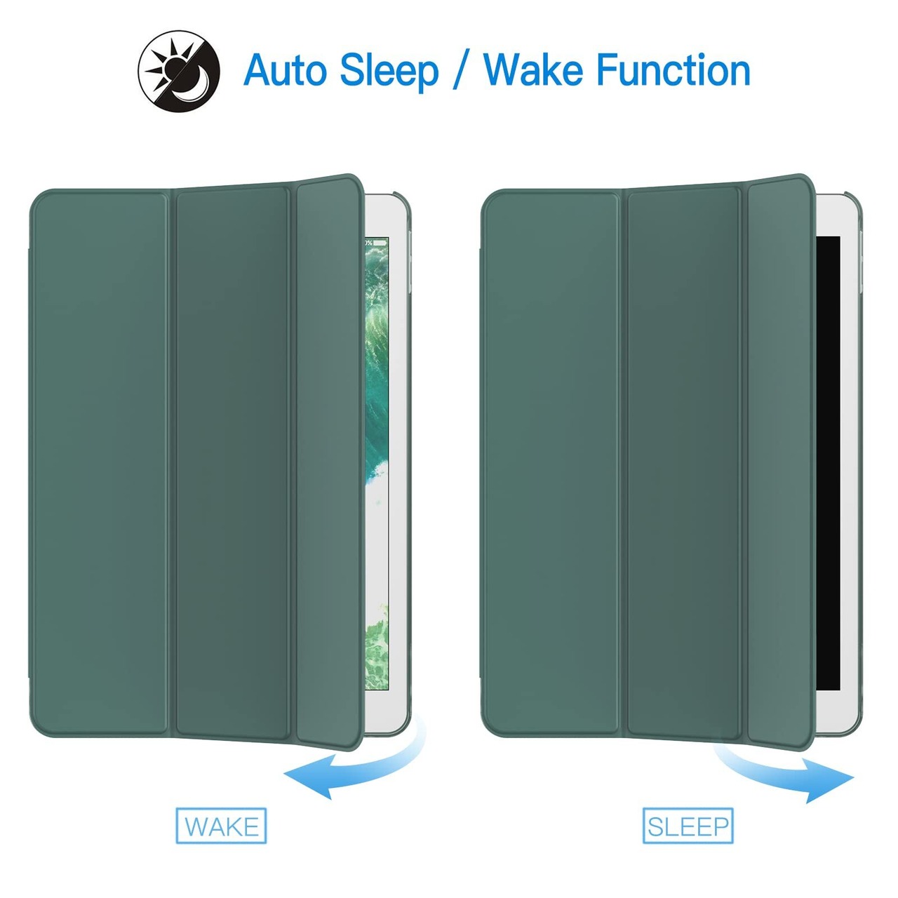 【磁気スマートカバー】マグネット内蔵、オートスリープとオートウェイクアップ機能が付きます。三つ折りフロントカバーにより、視聴とタイピングに合わせた2通りのスタンド角度を調整できます