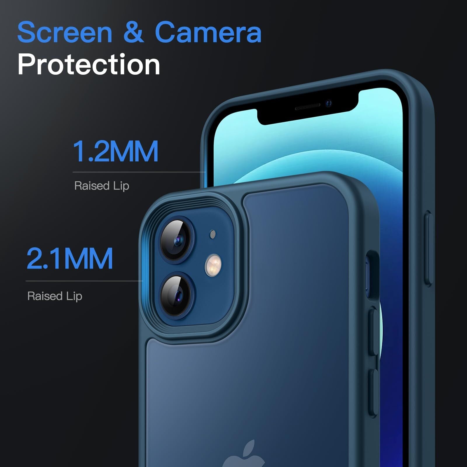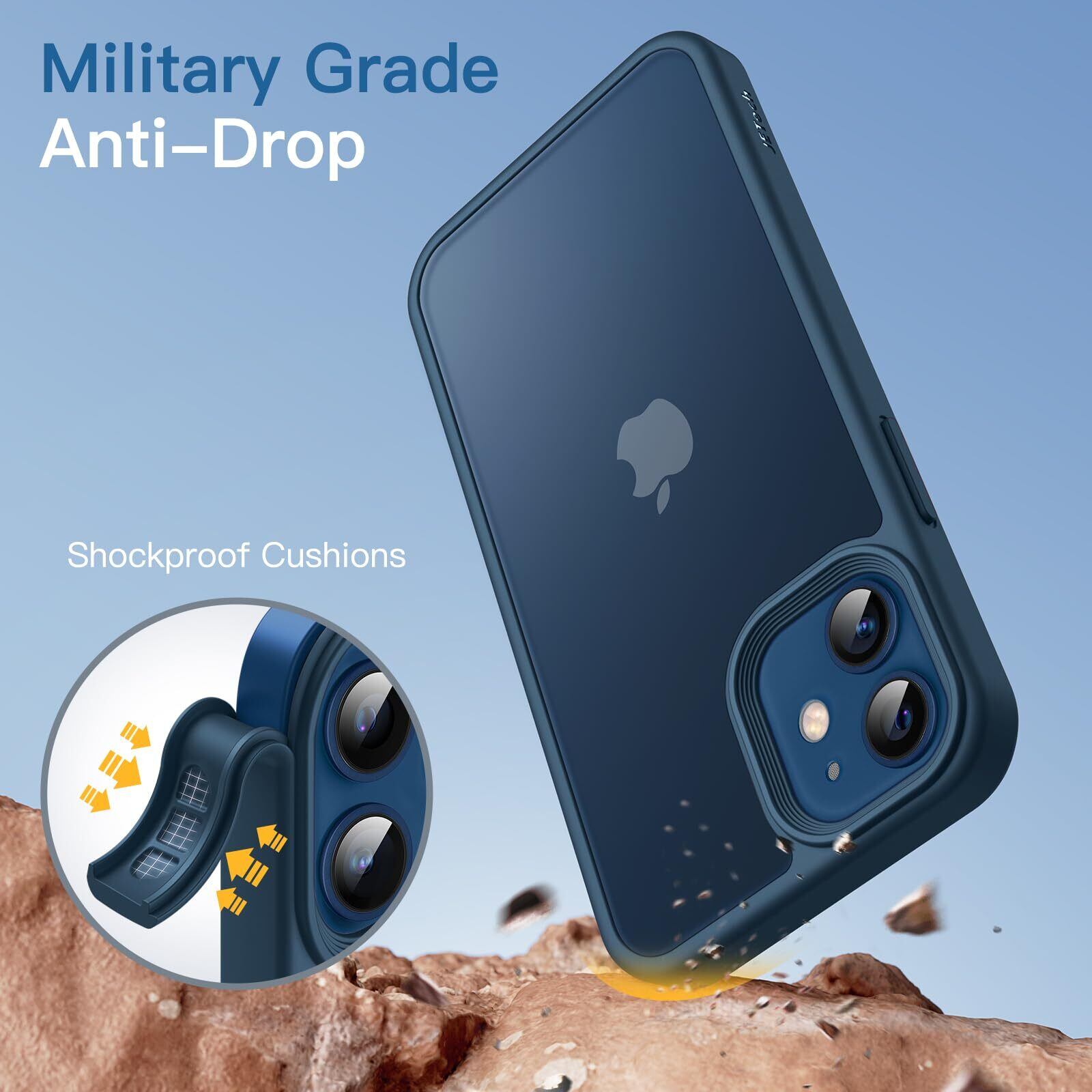 JETech マットケース iPhone 12 Mini 5.4インチ 耐衝撃性ミリタリーグレードの落下防止 つや消しの半透明の背面電話カバー 指紋防止 (ブルー)