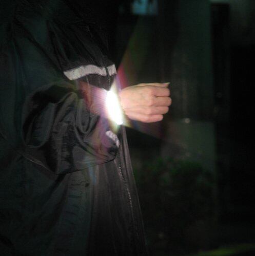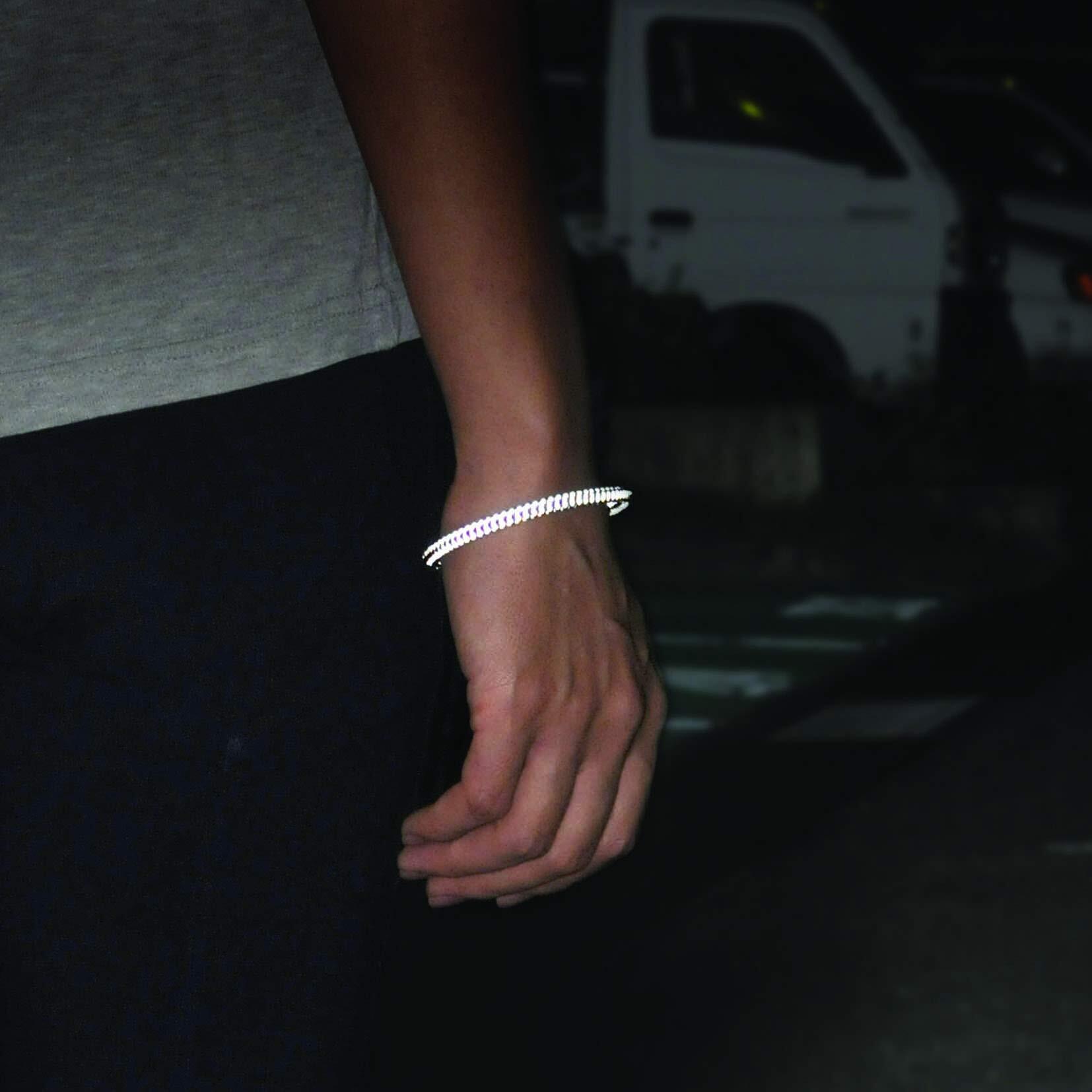 ●本体に反射材を編み込んでいるので、薄暮から夜間にかけて車のライトなどに反射して光り、ドライバーから視認ができる。(高輝度反射材使用)