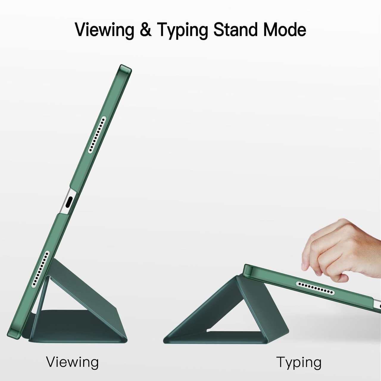マグネット内蔵、自動スリープとウェイク機能が付きます。三つ折りフロントカバーにより、視聴とタイピングに合わせた2つスタンド角度を調整できます