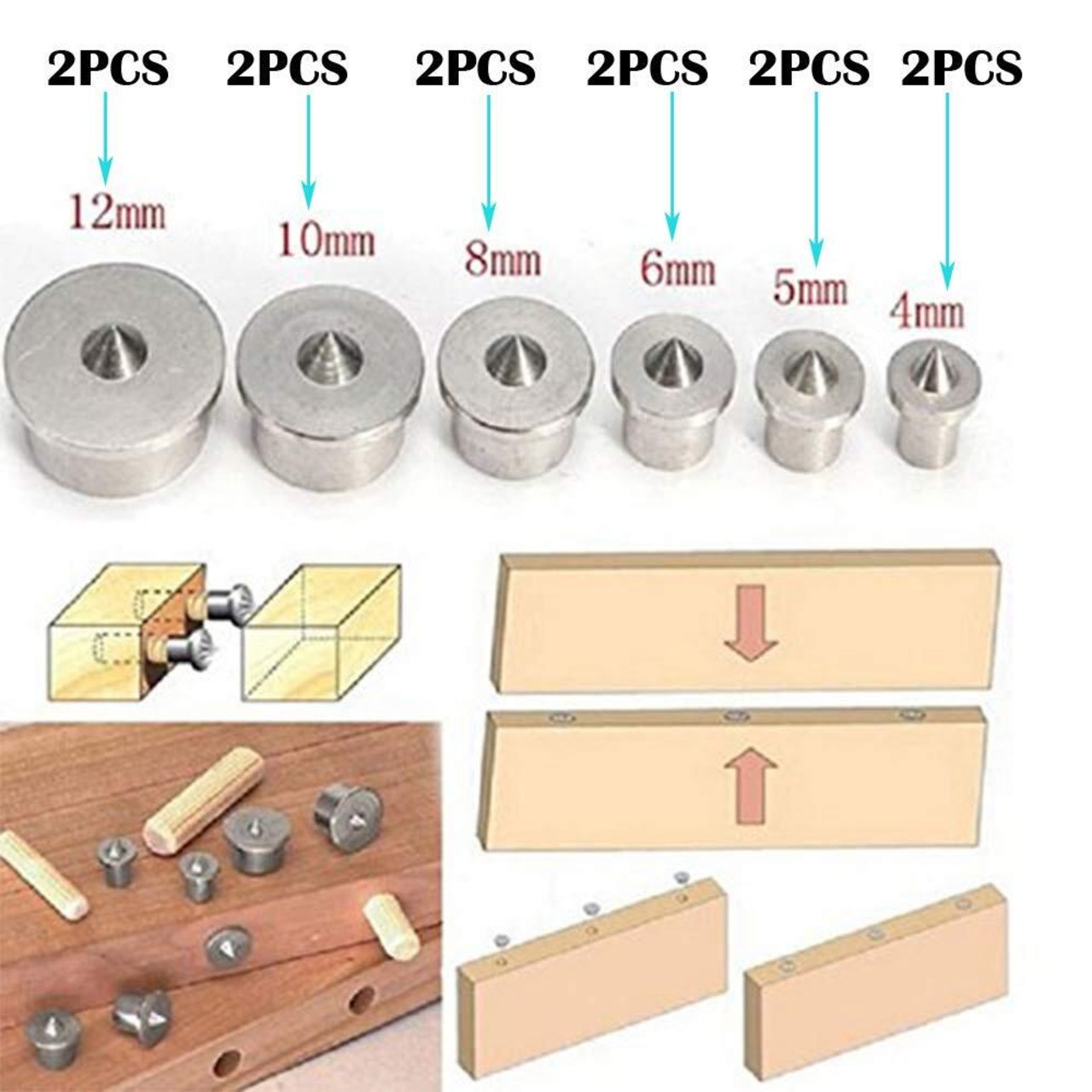 CESFONJER 12個ダボマーカー、木工ダボ、ダボ用マーキングポンチ.ダボ用木工ドリルビットアライメントツールポイントマーク4/5/6/8/10/12mm(各サイズ2個)(ソリッド)