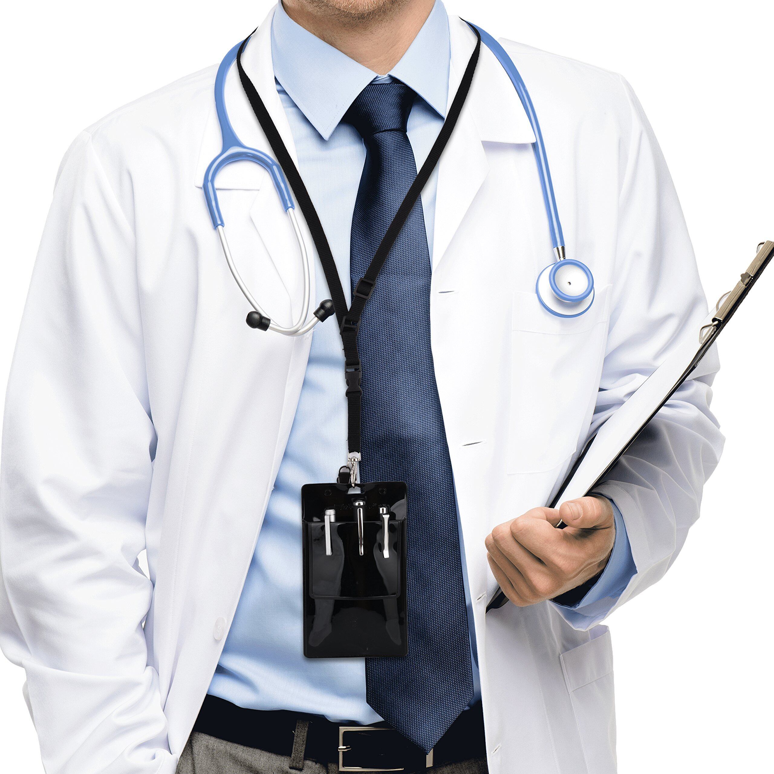 【適用対象】シンプルで落ち着いた黒色のPVC素材を使用しており、ユニホーム、制服、ビジネスシャツ、白衣などにはよく似合いますし、市役所職員、ビジネスマン、ナース、看護師、医者、教師、エンジニア、研究員などの方々にお勧めします。
