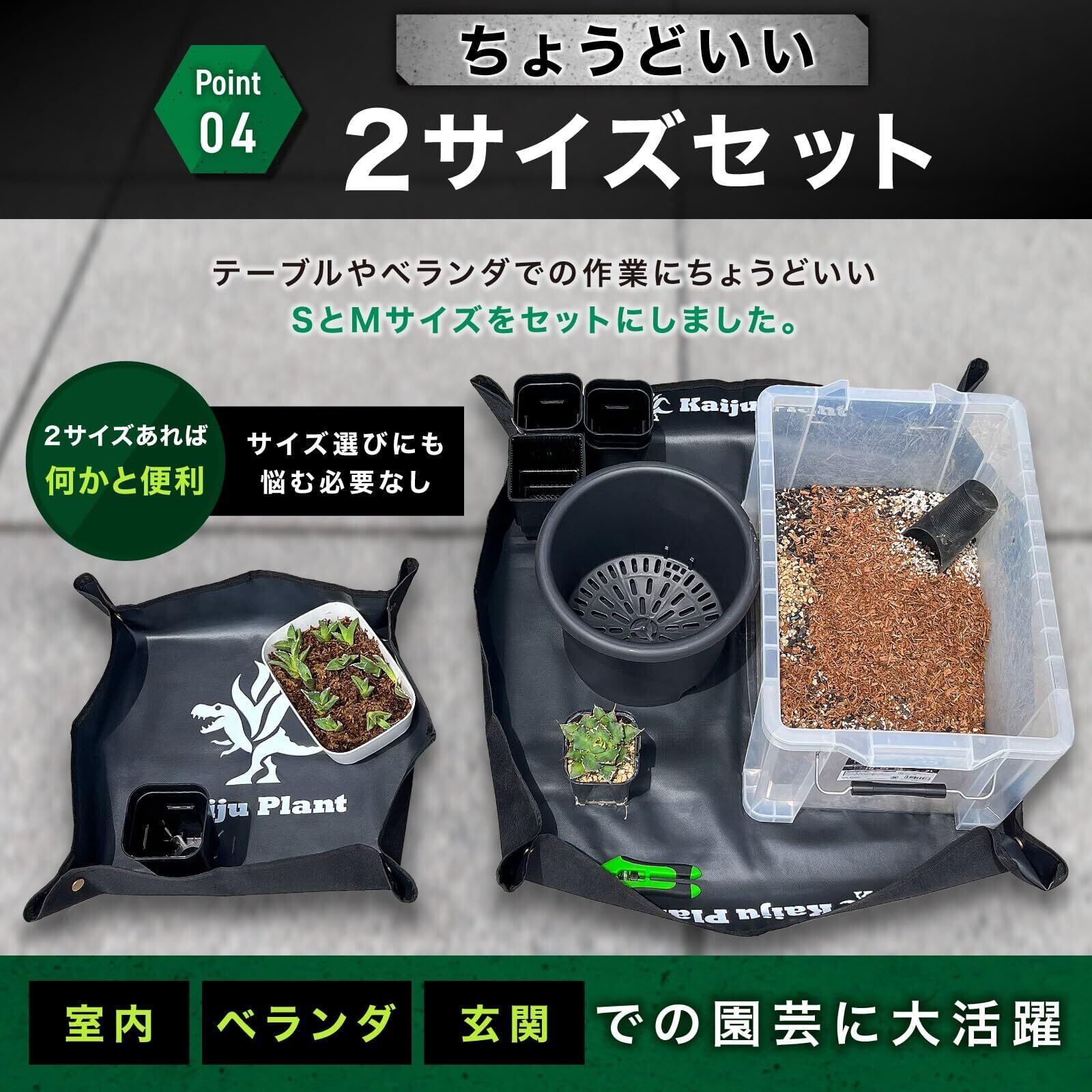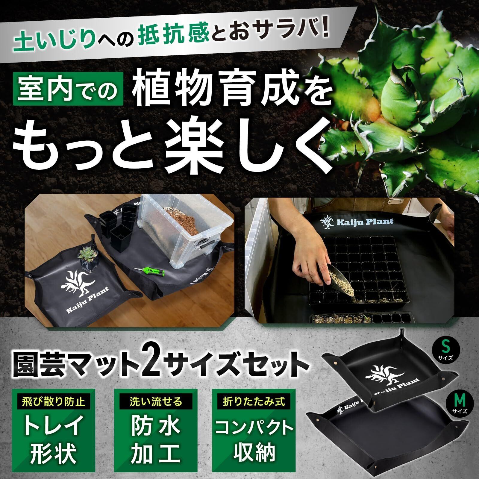 Kaiju Plant 園芸シート 園芸マット 2サイズセット 室内園芸向け 床を汚さない 植え替えシート アガベ 多肉 塊根 DIY 作業用シート ガーデニングシート ガーデニングトレー 作業マット