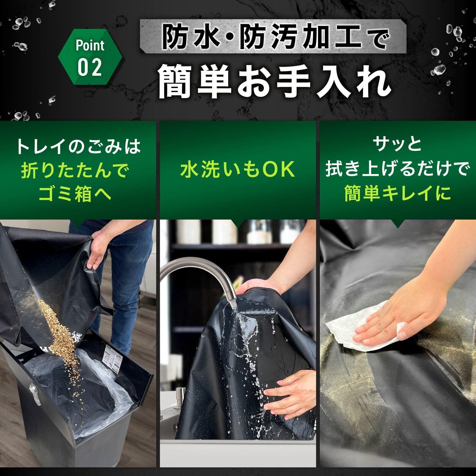 【防水・防汚加工で簡単お手入れ】PVC加工で表面はツルツル防水仕様。使用後はまとめてポイッで簡単ゴミ捨て。汚れもサッとふき取るだけの簡単お手入れ。