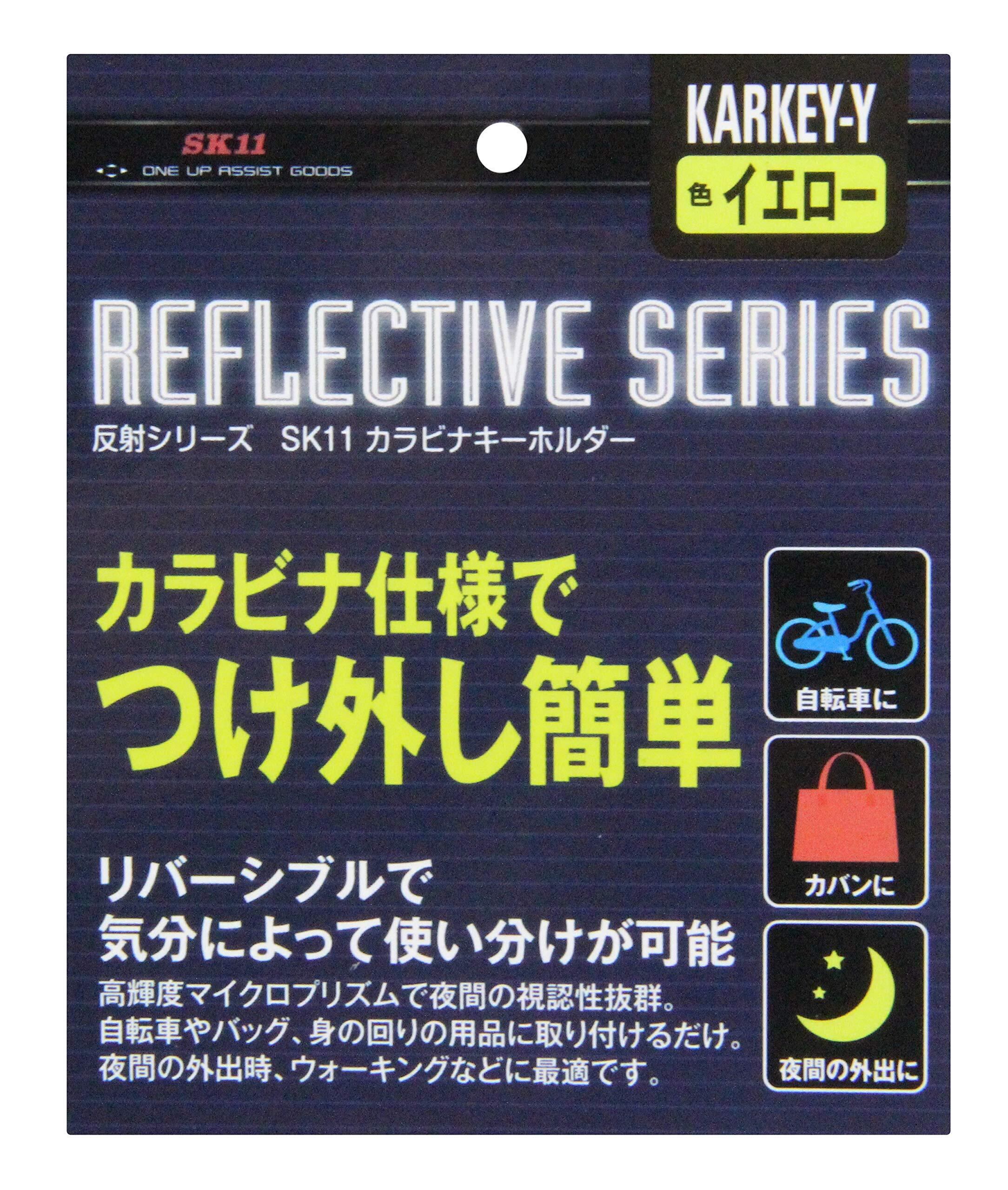 SK11(エスケー11) カラビナキーホルダー リバーシブル イエロー 高輝度 マイクロプリズム KARKEY-Y