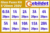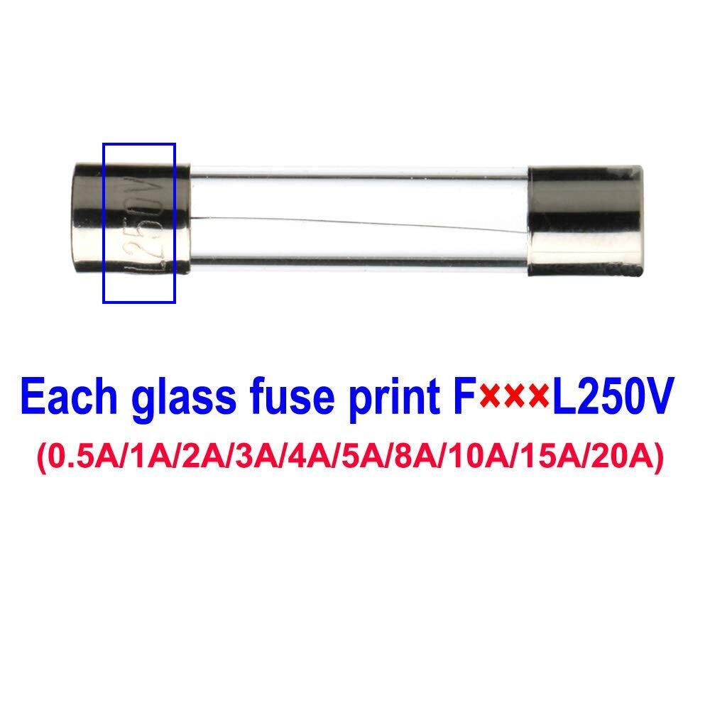 200個 5 * 20mm ガラス管 ヒューズ (0.5A / 1A / 2A / 3A / 4A / 5A / 8A / 10A / 15A /20A のヒューズを各20個づつの)