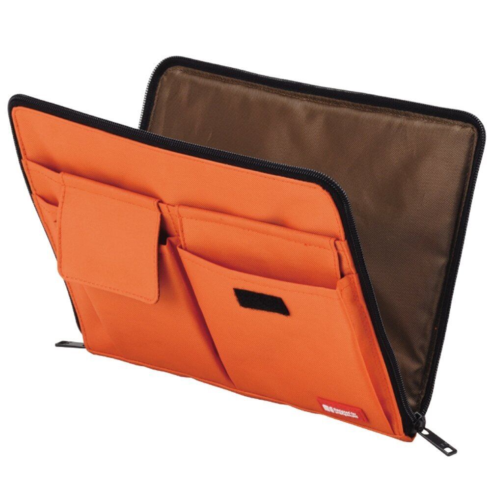 カバンの中でかさばらない薄型タイプ! ●大きくコの字に開くメインポケット ●すぐに取り出せて便利 ●便利なペンポケット ●クッション入りで落としても安心