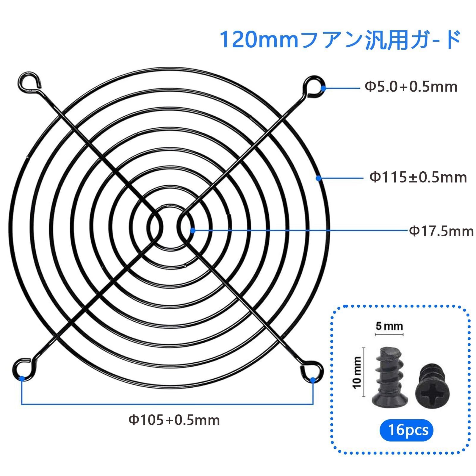 【仕様】■全体的なサイズ:126x126mm。■パッケージの内容:4xファングリル 、16xネジ。■ご注意:ファンのサイズを測定し、適切なグリルカバーを選択してください。