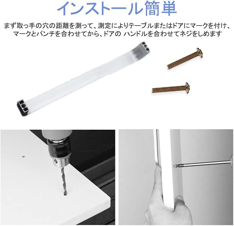 【インストール簡単】まず取っ手の穴の距離を測って、測定によりテーブルまたはドアにマークを付け、マークとパンチを合わせてから、ドアの ハンドルを合わせてネジをしめます。