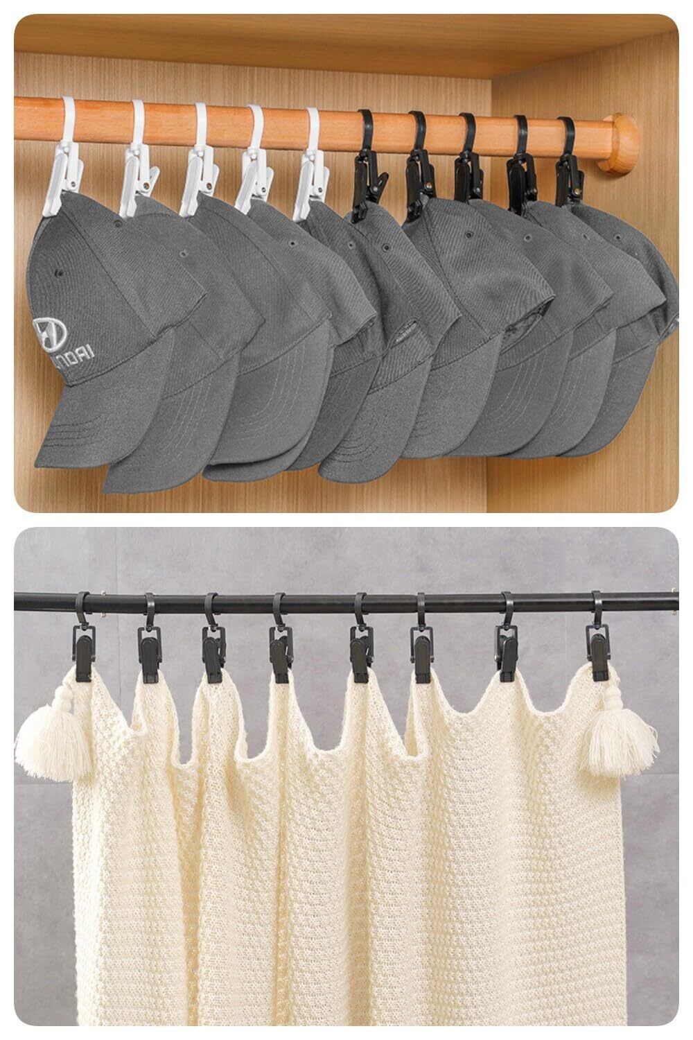 【デザイン】フックとクリップ部分は360°回転できるので、柔軟で便利。内部グリップの歯のデザイン、服は簡単に脱落しません。
