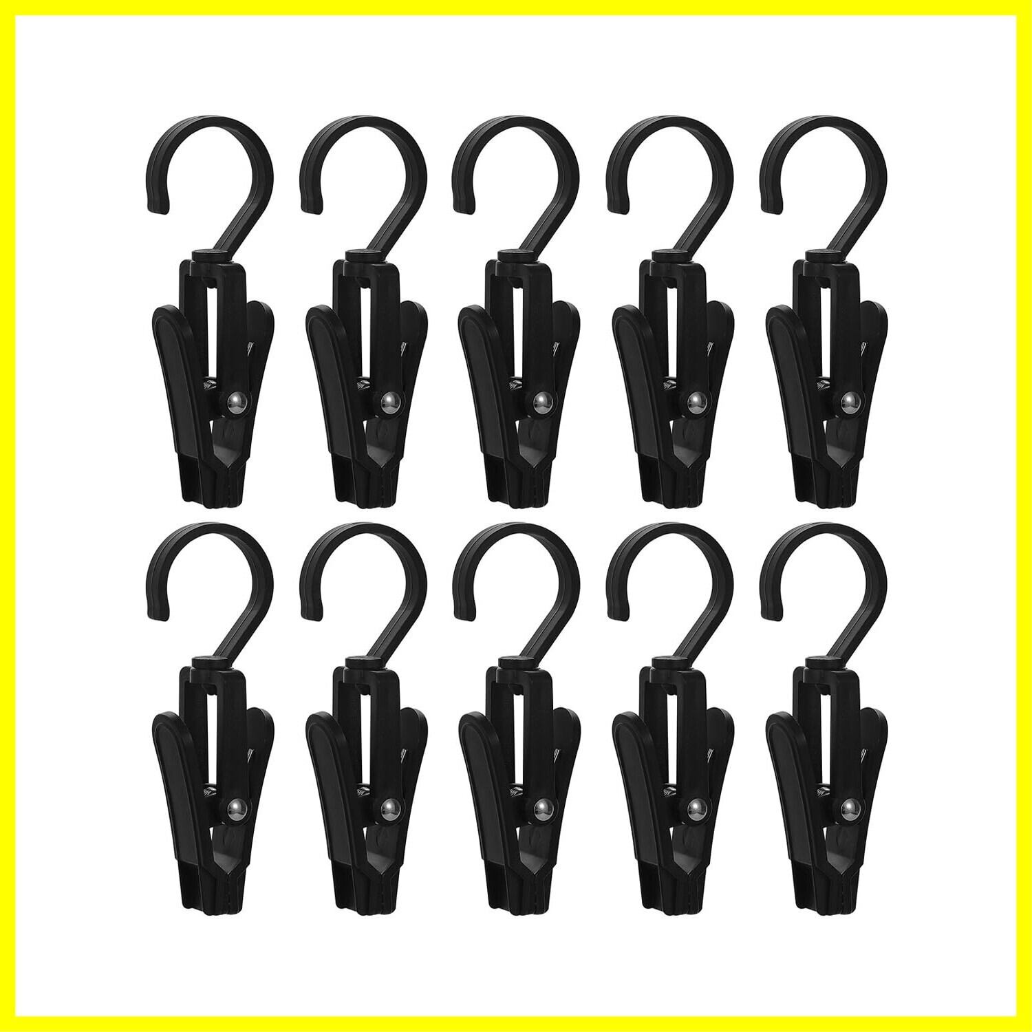 harukita 洗濯クリップ 洗濯バサミ 洗濯ばさみ カーテンクリップ フック付き シャワーカーテン 回転フック ハンガー 多用途のフック ブラック 10個