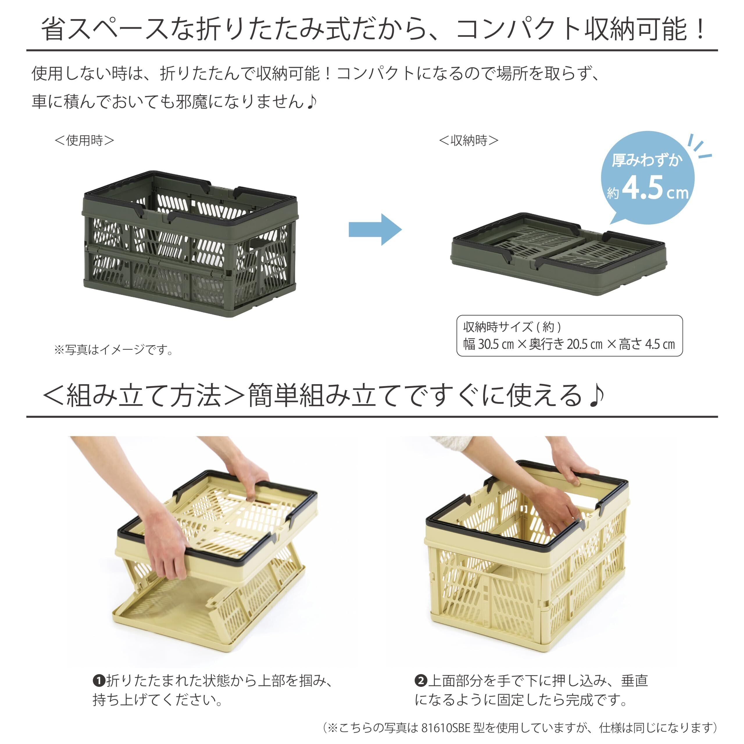武田コーポレーション 【かご・収納・ボックス】 カーキ 30.5×20.5×16cm 取っ手付折りたたみコンテナSカーキ 81607KH