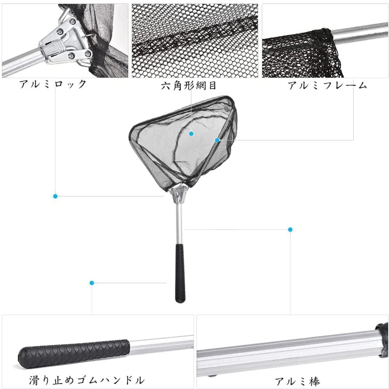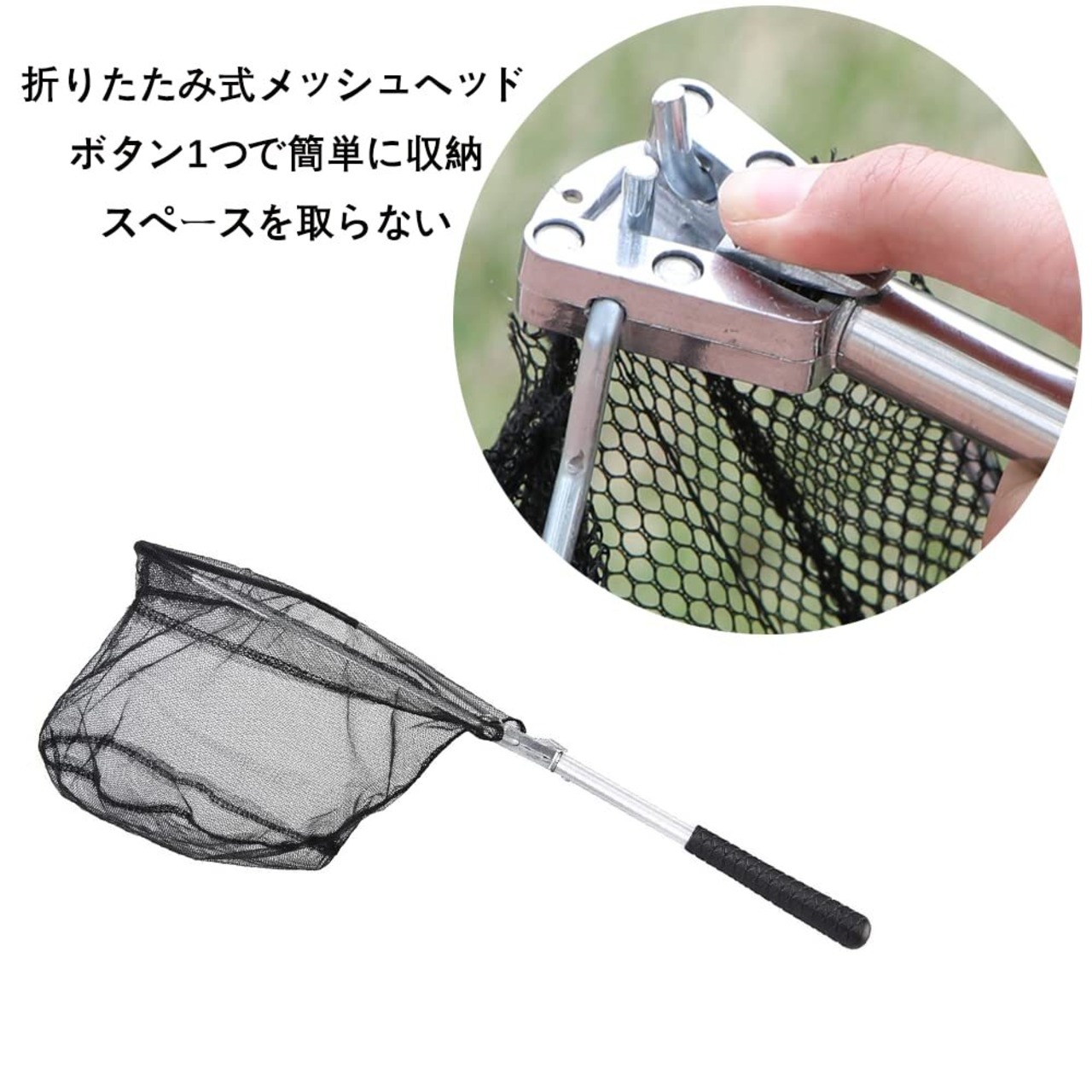 【たも網素材】1個セット釣り具玉網(折りたたみ式ネットポール*1)、ステンレス鋼+アルミニウム合金製、耐久性があり、耐重量も十分にあります。