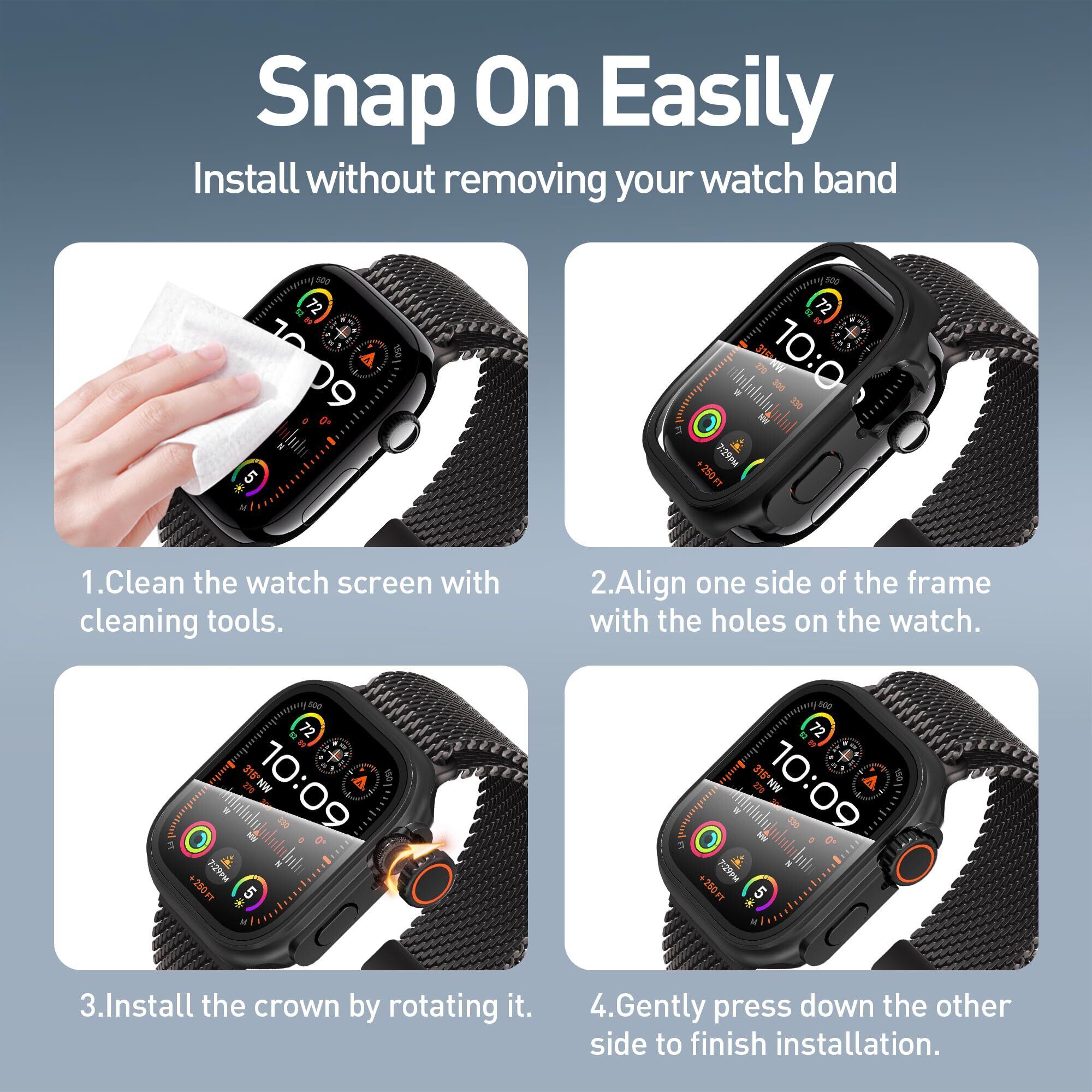 製品の特徴:For iWatch 11/10 42mmケース、内蔵保護膜縁の黒いテープが時計画面の光の干渉を防ぎ、強い露出を避け、着用体験を向上させます。時計の横にあるサムターン専用のサムターンカバー(3つ)もあるので、簡単に取り付けて使うことができます