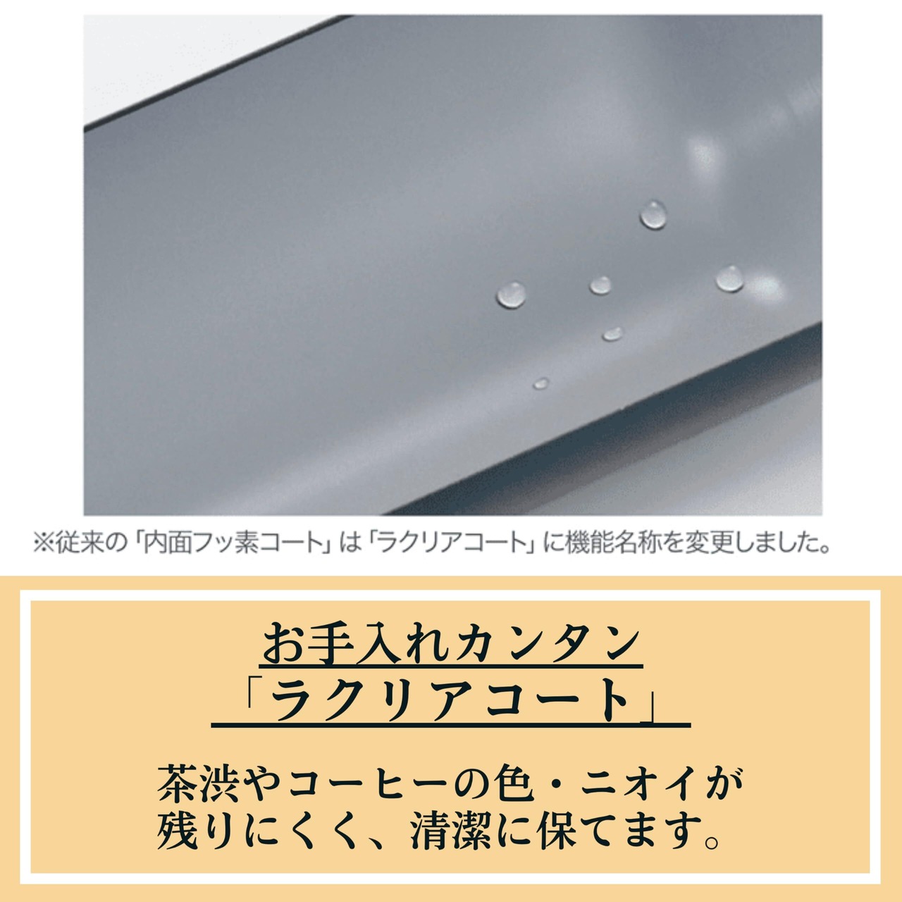 :色やニオイが残りにくく落ちやすい「内面フッ素コート」