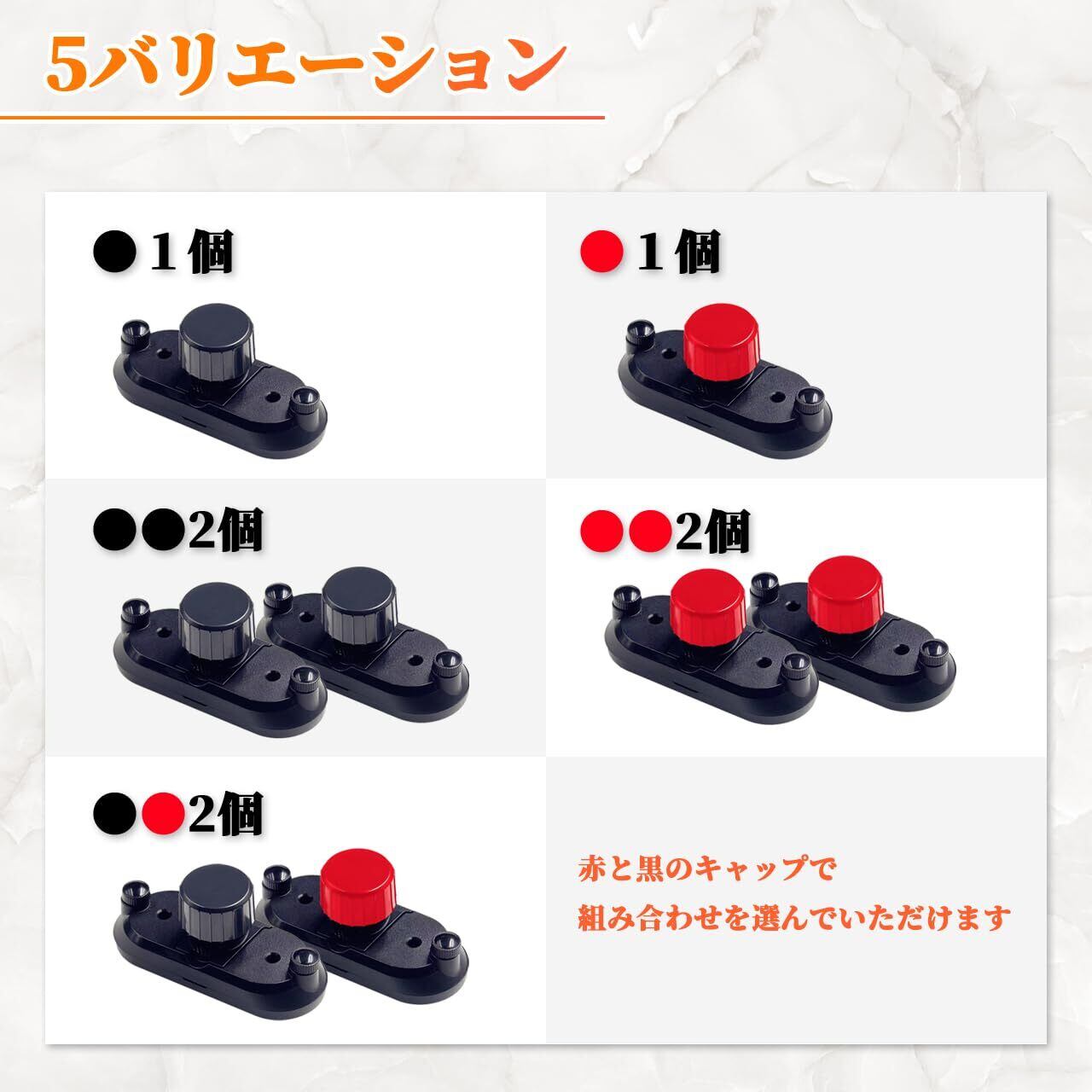 (黒1個)、(赤1個)、(黒2個セット)、(赤2個セット)、(黒、赤2個セット)の5バリエーションからお選びいただけます。