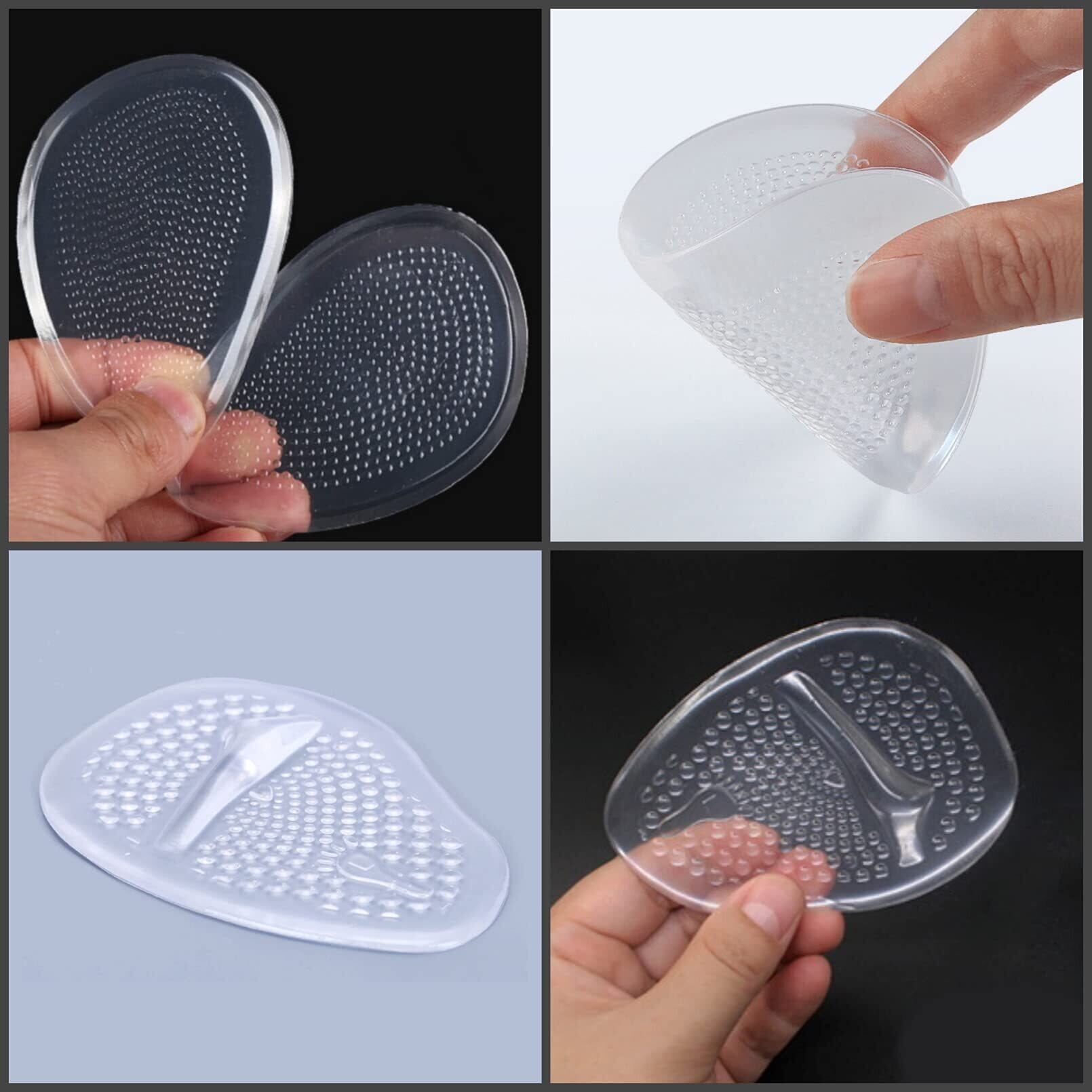 ヒールデザインのパンプス、サンダル、ブーツの前滑り防止、サイズ調整、足への衝撃を吸収してくれる透明タイプのつま先ジェルインソールです。