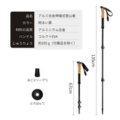 【注意】トレッキングポールの長さは自由に調整できますが、STOPという文字が出るまでご調整してください。それ以上調整すると、ポールは折れしやすくなるので、お気をつけてください。収納時:67センチメートル、使用時:135センチメートル、重量:285グラム。