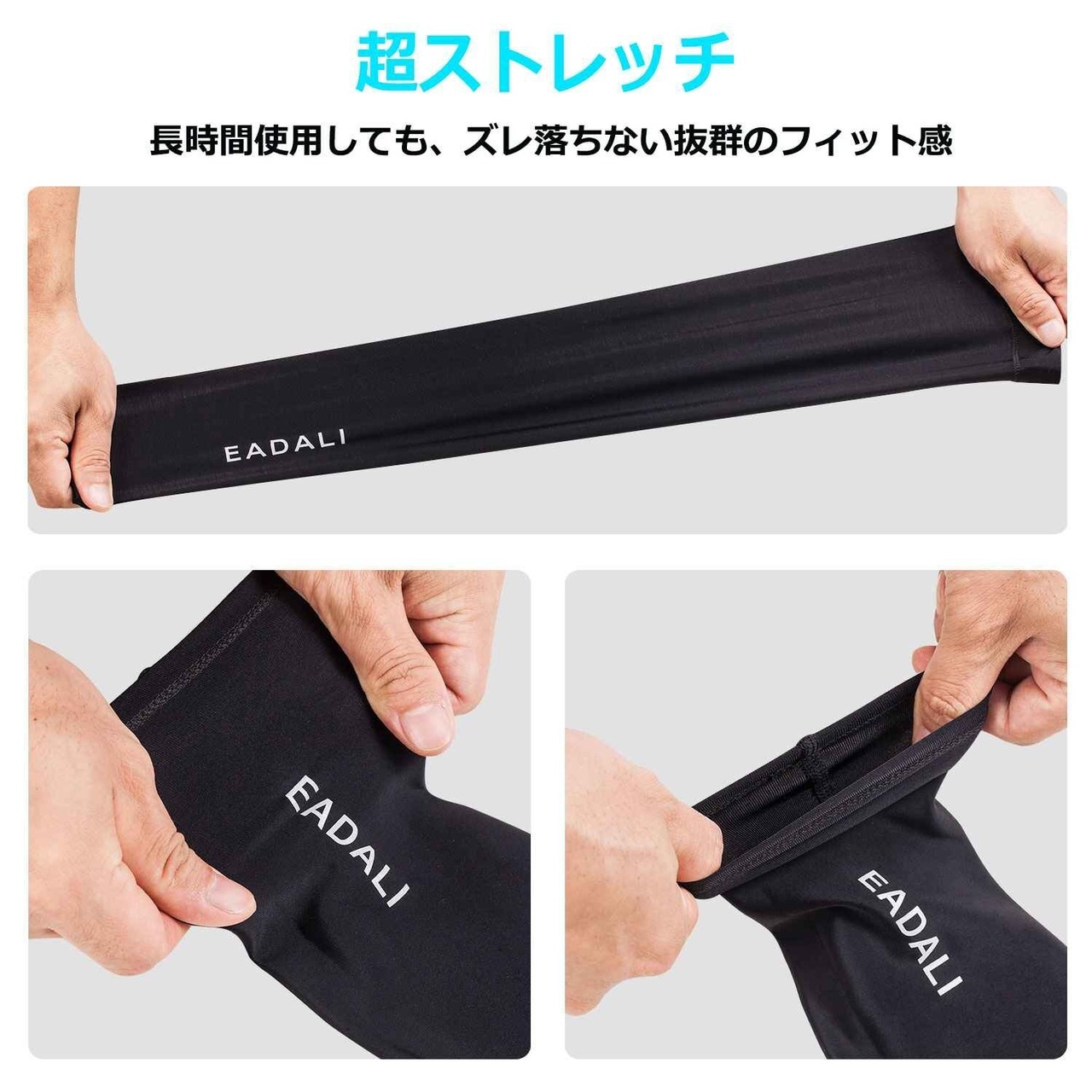 [Eadali] アームカバー 腕カバー 冷感作用 吸汗速乾 滑り止め UPF50+ UV対策 日焼け止めカバー 紫外線対策 スポーツ活動用 夏マスト 【男女兼用】 【2枚】 ブラック