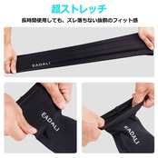 【素材構成】ポリエステル85%とスパンデックス15%の高弾力繊維で構成されており、接触冷感素材で肌触りが涼しく、UVカット率は99%で、伸縮性と通気性に優れています。また、シリコン滑り止めも付いています。【適用対象】メンズ、レディース、男女兼用で。【サイズ】S、M、L。