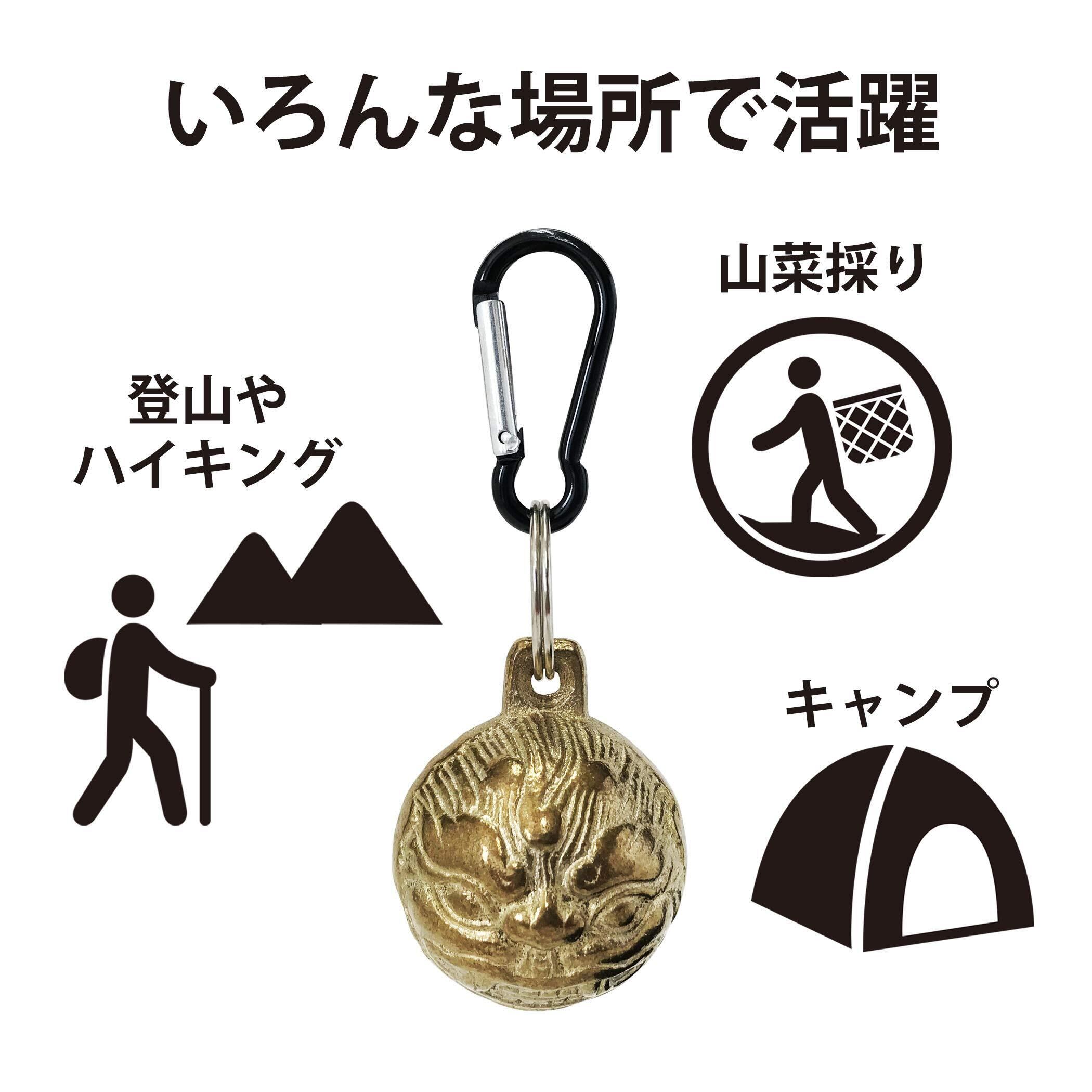 【この鈴があれば鬼に金棒】鈴の音は大きく遠くまで響き、怖面からは想像できない高音で心地い鈴の音を鳴らします。熊の多い山の中でもこの鈴があればまさに鬼に金棒です。
