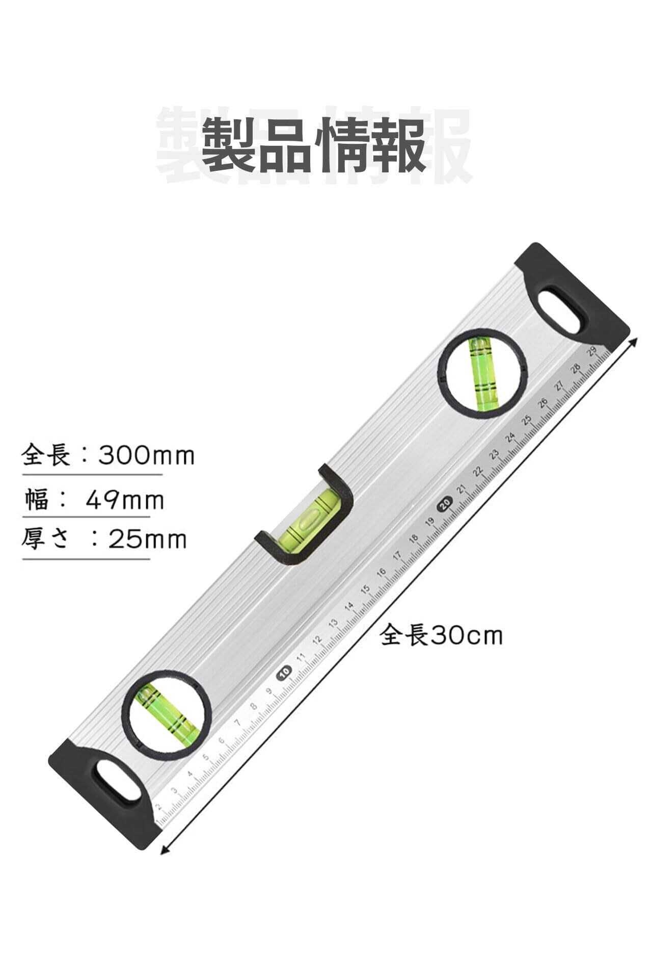 水平器 マグネット 300mm 水準器 磁性で吸着しさしがね 傾斜計 高精度 レベル 測定器 測定工具 スケール建設大工職人用 物差し 距離測定器 室内飾り測定用 大工道具 建築現場 土木 日曜大工やDIY作業に (シルバー)