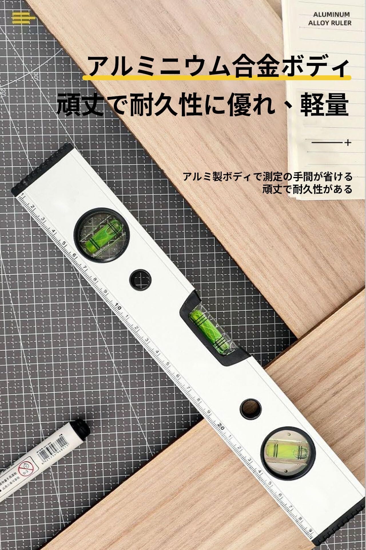 【高品質素材】この水平器は、耐腐食性と耐久性に優れたアルミニウム合金素材を使用しています。これにより、あらゆる環境下で最適な状態を維持することができます。