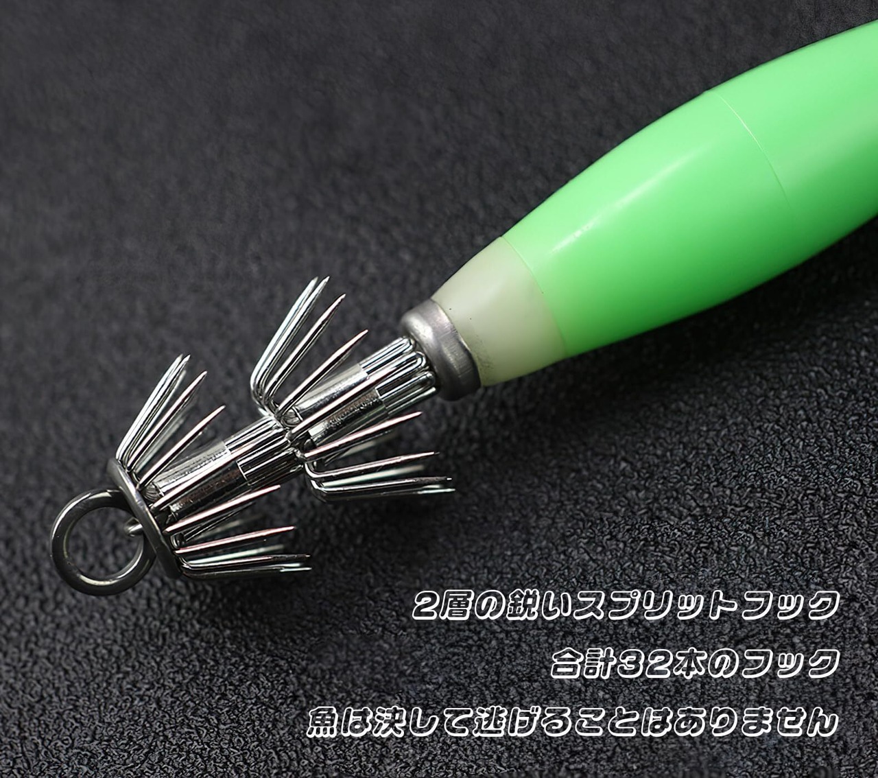 デュアルレイヤーフック:2層の鋭いスプリットフックは非常に鋭く強く、褪色や錆びを防ぎ、蛍光イカジグフックの釣り成功率を効果的に向上させ、魚が逃げるのを防ぎます。