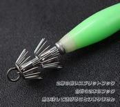 フロントスイベル:蛍光イカジグ。高品質のフロントスイベルでラインのねじれをなくし、イカジグをより便利に。