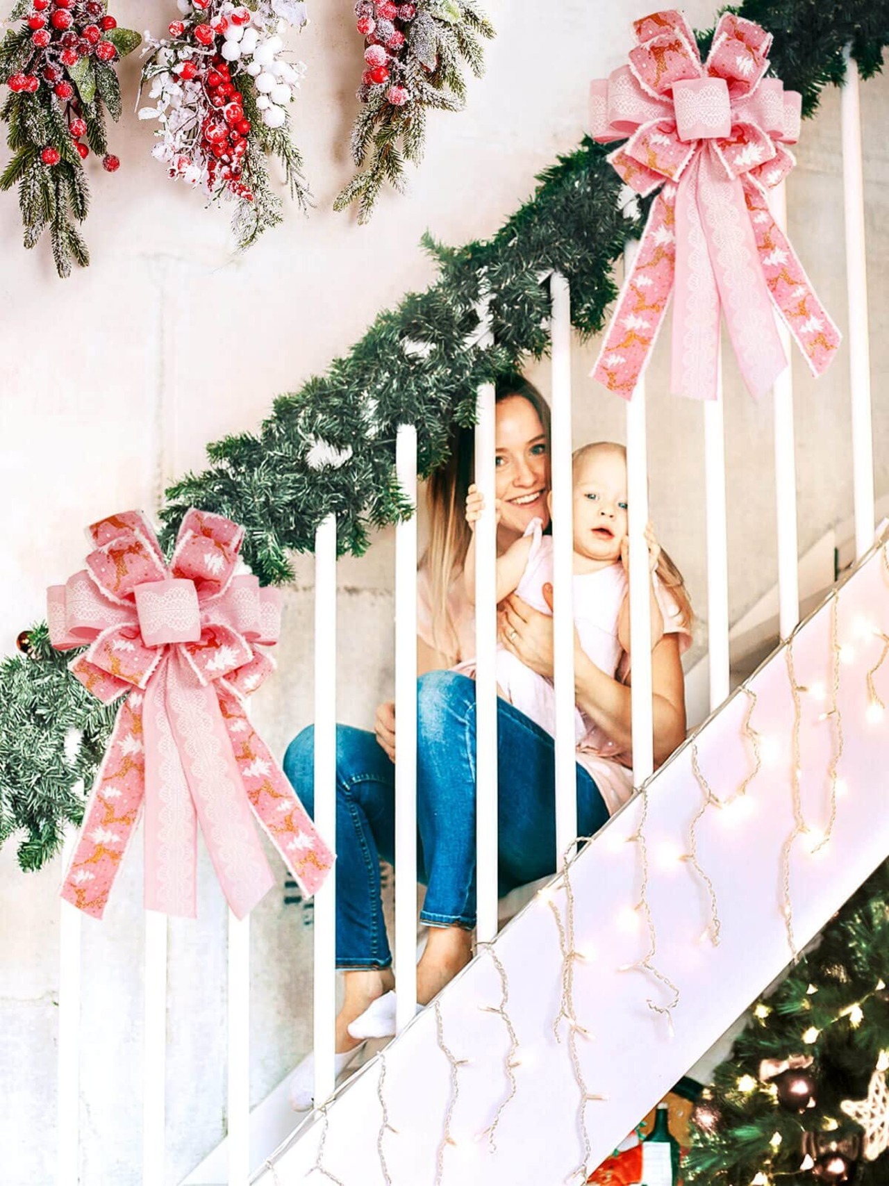 【多目的で再利用可能】 このクリスマスツリーのボウトッパーは、クリスマスツリーの装飾やマントル、階段、ドア、ガーランドの装飾に最適です。また、結婚式、誕生日パーティー、新年のパーティーなど、あらゆる重要なお祭りで使用でき、家族や友人への完璧な贈り物としても最適です。