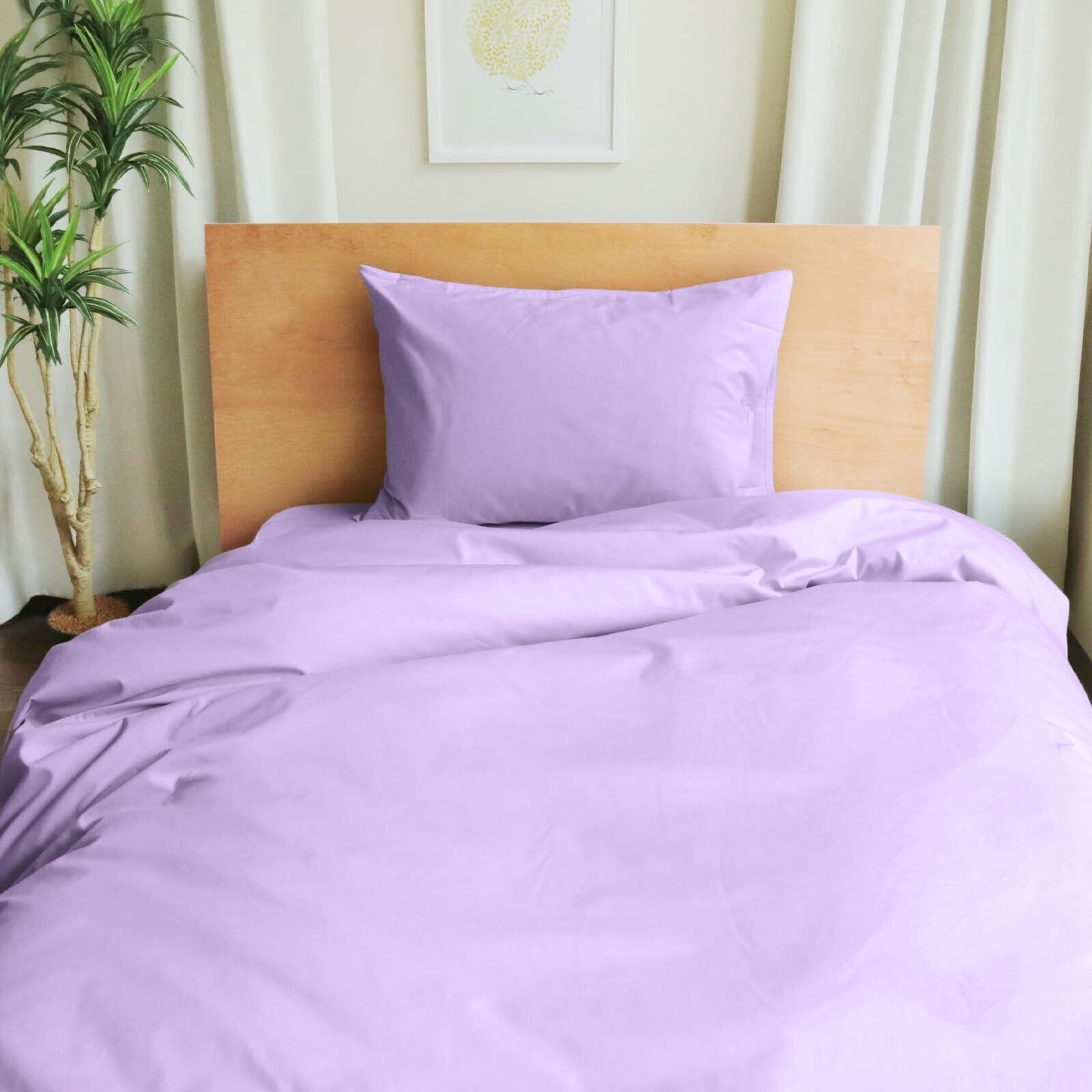 MORE 掛け布団カバー シングル 150x210cm 日本製 綿100% 無地 高密度200本 抗菌防臭加工 8ヶ所紐付き ホテル仕様 (シングル, ラベンダー)