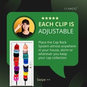 FLANCCI ドアの上の帽子ラックオーガナイザー、野球帽ホルダー、クローゼットのドアラック用帽子ハンガー、調節可能な帽子収納ラック、ストラップ2本、調節可能な吊り下げフックで最大18個の帽子を収納
