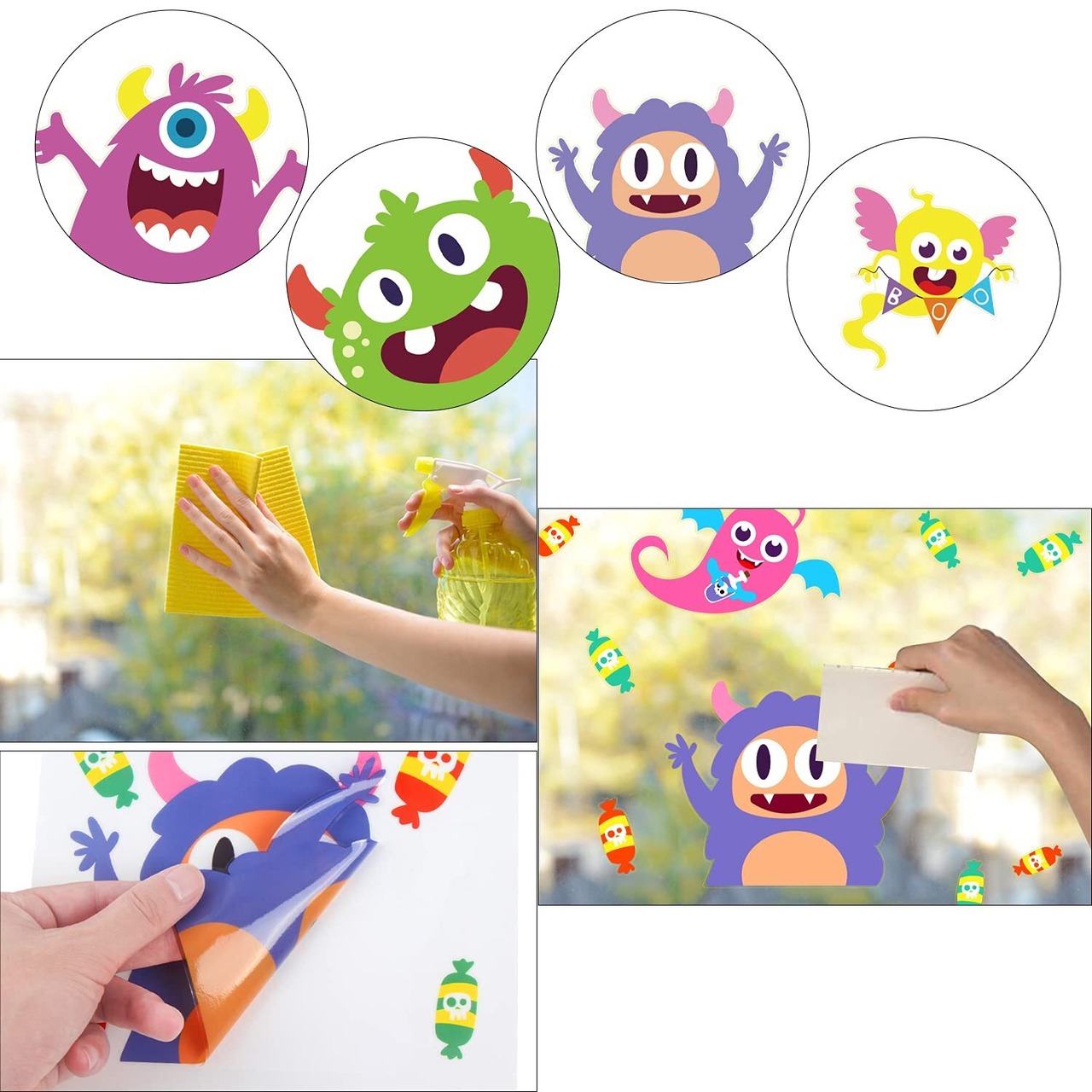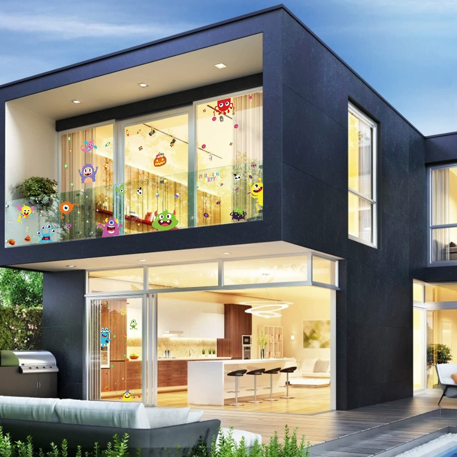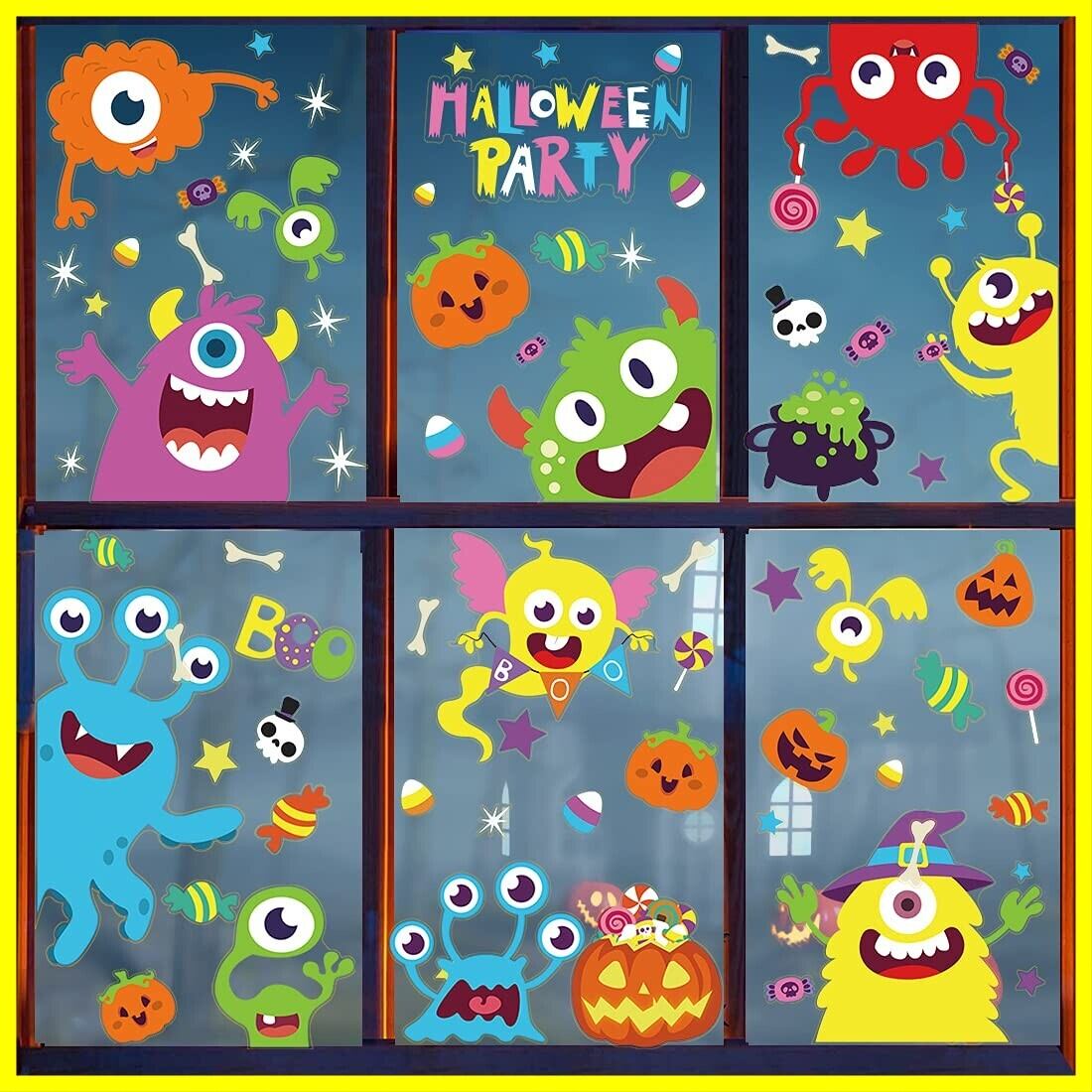 DERAYEE ハロウィン 静電 ステッカー ウォール 両面 モンスター 95pcs入り 剥がせる 汚れない 怪獣 静電気シール 窓(片目の怪獣)