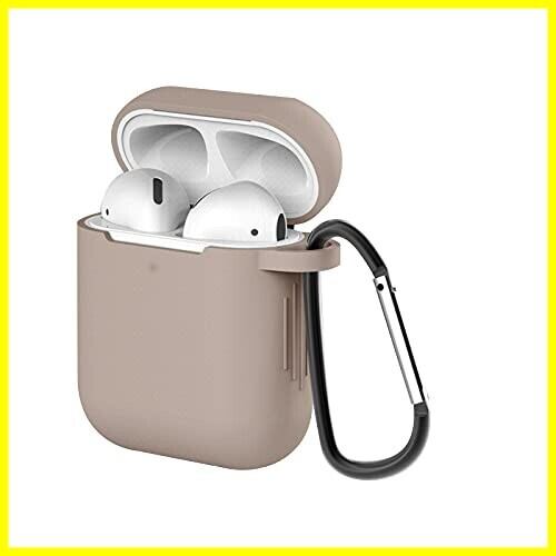 AirPods ケース AirPods第2世代と第1世代に適用(前のLEDライトが見える) シリコンカバー 全面保護ケース Apple エアーポッズ カバー 軽量 小型 かわいい TPUケース 耐衝撃 防塵 カラビナ付き 紛失防止 SERFER (ブラウン)