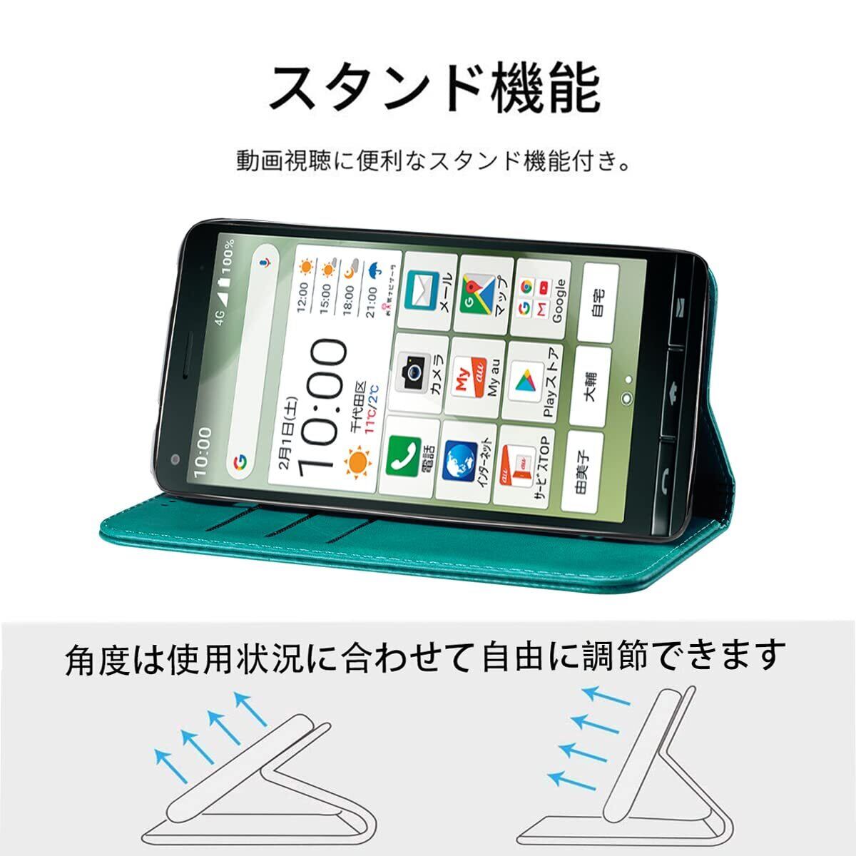 BASIO4 KYV47 ケース 手帳型 高質PUレザー BASIO4 KYV47 カバー KYOCERA BASIO 4 ケース 耐衝撃 内蔵マグネット開閉式 ベルトなし スマホケース おしゃれ カードポケット スタンド機能 便利 スプラット同梱 携帯ケース(ターコイズ)