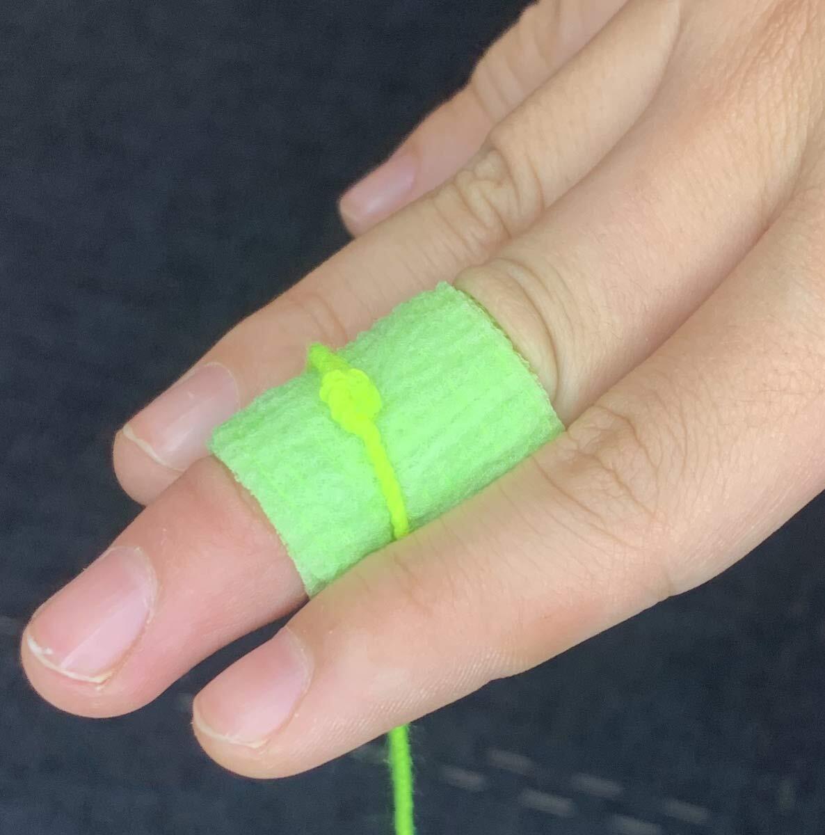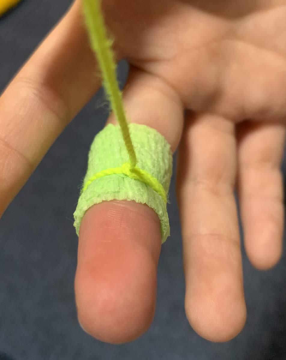 このテープは柔らかく伸縮性にも優れており指の曲げ伸ばしを妨げません。実際に使用するときは指を2周するくらいの長さで切って使うとよいでしょう