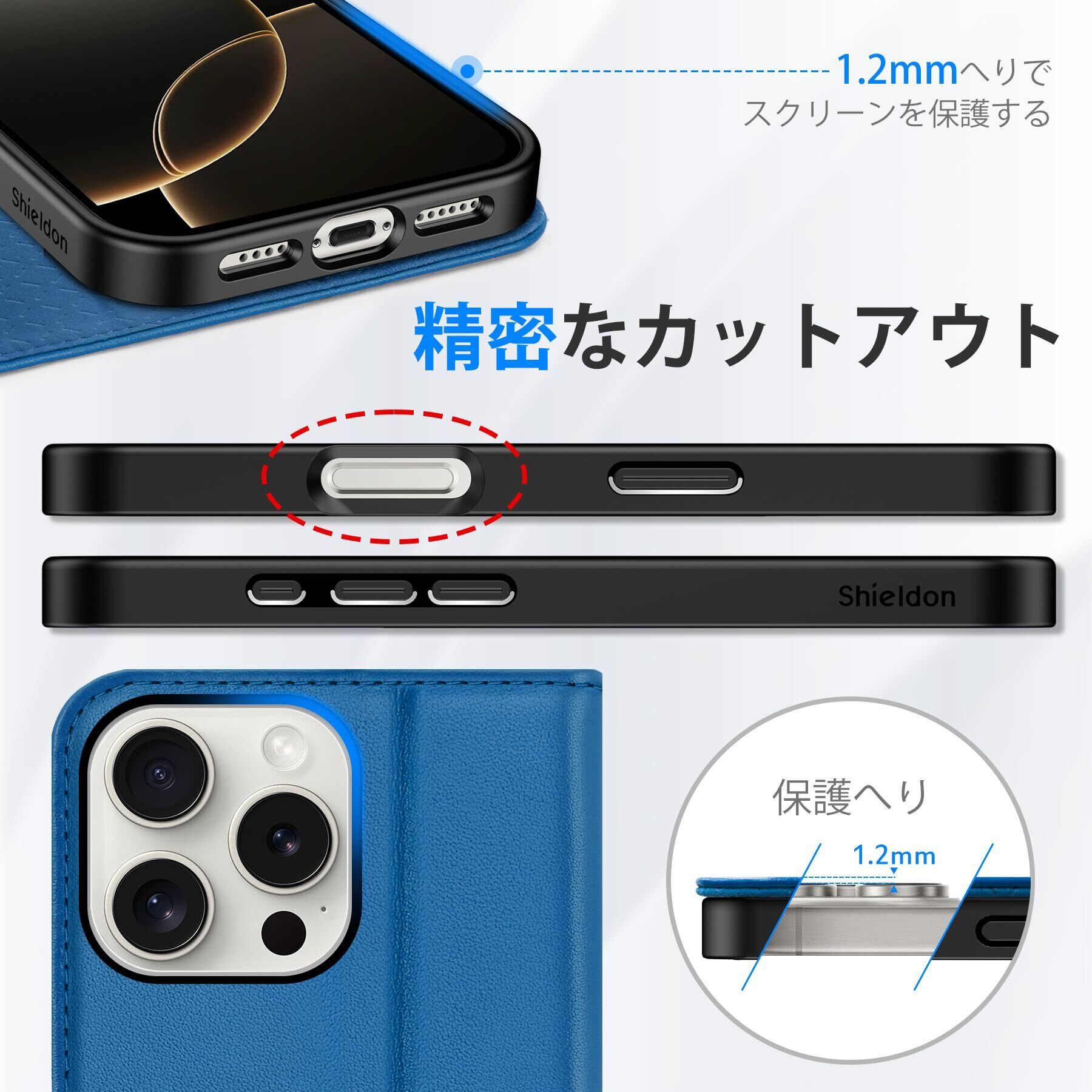 SHIELDON iPhone16 ProMax 対応ケース 手帳型 本革 あいふぉん 16 プロマックス 用 スマホカバー カード収納 横置きスタンド機能 マグネット内蔵 TPU素材 衝撃吸収 [RFIDブロッキング] 全面保護 アイホン 16 ProMax 対応 スマホケース 2024年発売 6.9インチ 5G ブルー