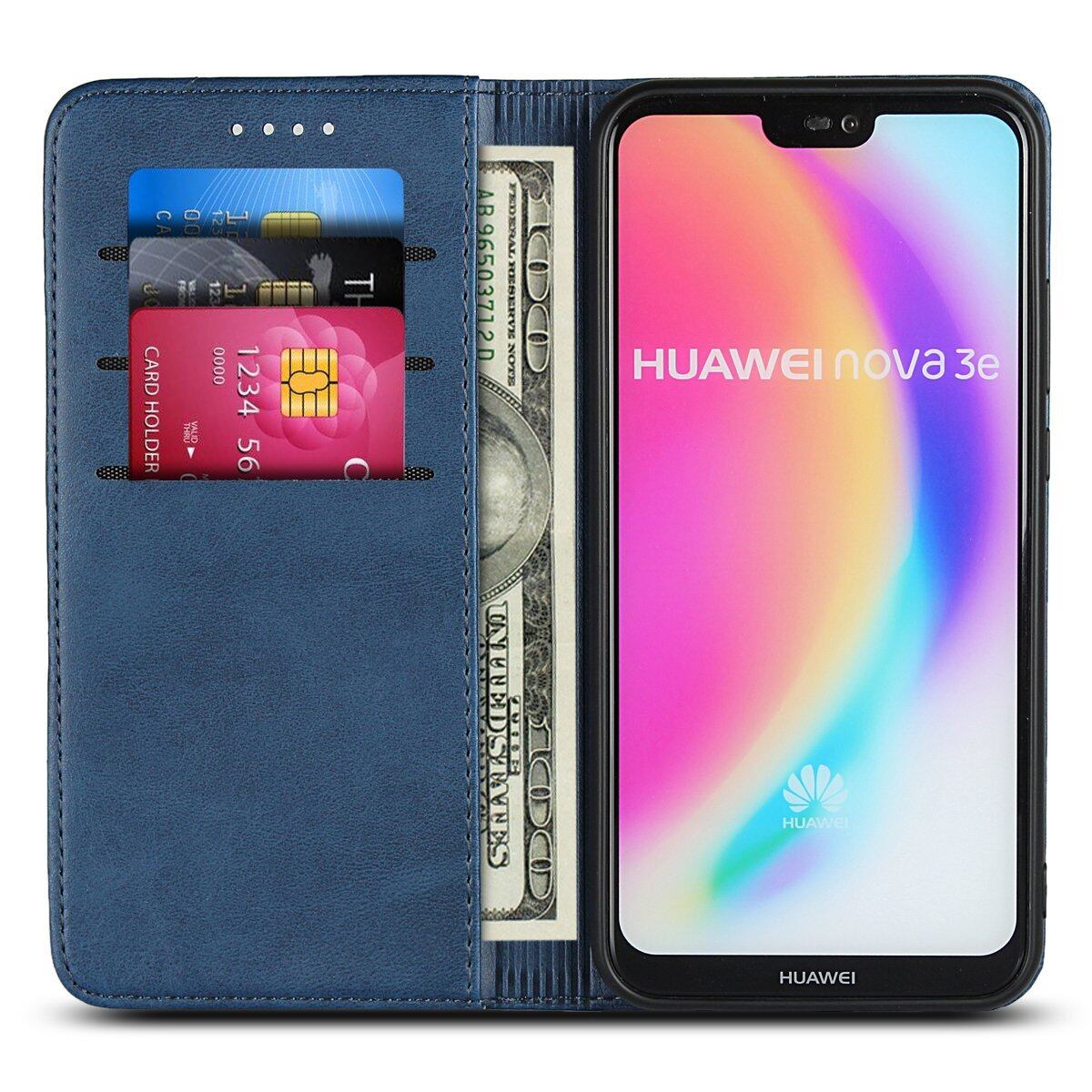 HUAWEI P20 lite/au Huawei P20 lite HWV32 ケース 手帳型 スタンド P20 lite ケース HUAWEI P20 lite 手帳型 ケース P20 lite ケース 手帳 au Huawei P20 lite HWV32 ケース 適用 内蔵マグネット 携帯カバー スタンド機能 落ち着いた色 【レトロ ネイビー】